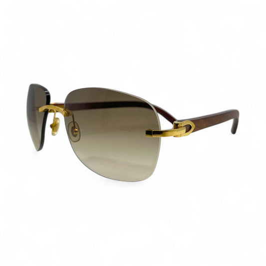 CT0014RS Authentic Cartier C Decor - Gold Bubinga Woods Sunglasses w/ Brown Lenses (2010s)