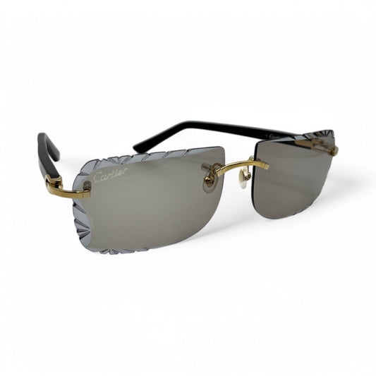 Authentic Cartier C Decor - Gold Black Acetate Sunglasses w/ Light Gray #3 Lenses (Diamond Cut) (2010s)