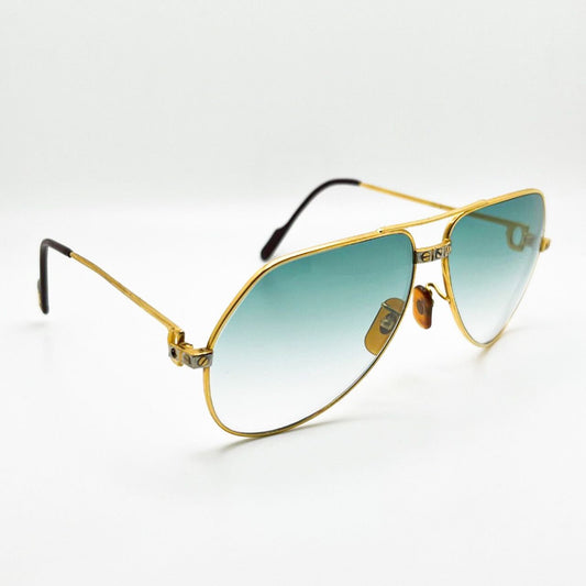 Authentic Cartier Santos (Aviators) - Gold Wires Sunglasses w/ Hennessy Brown Gradient Lenses (80s)