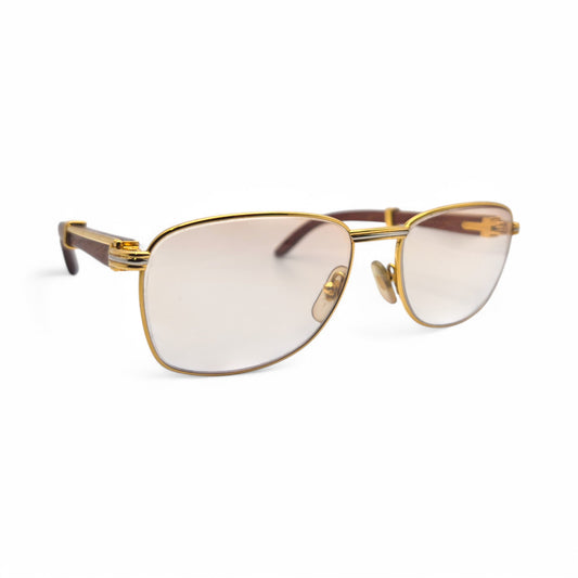 Authentic Cartier Bagatelle - 55-18 Vintage Gold Woods Eyeglasses w/ Clear Lenses (90s)