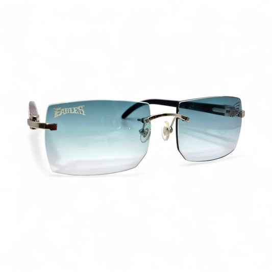 C Decor "Philly Eagles" - Silver Black Buffs Sunglasses w/ Custom Aqua Blue Bugatti Lenses (2025)