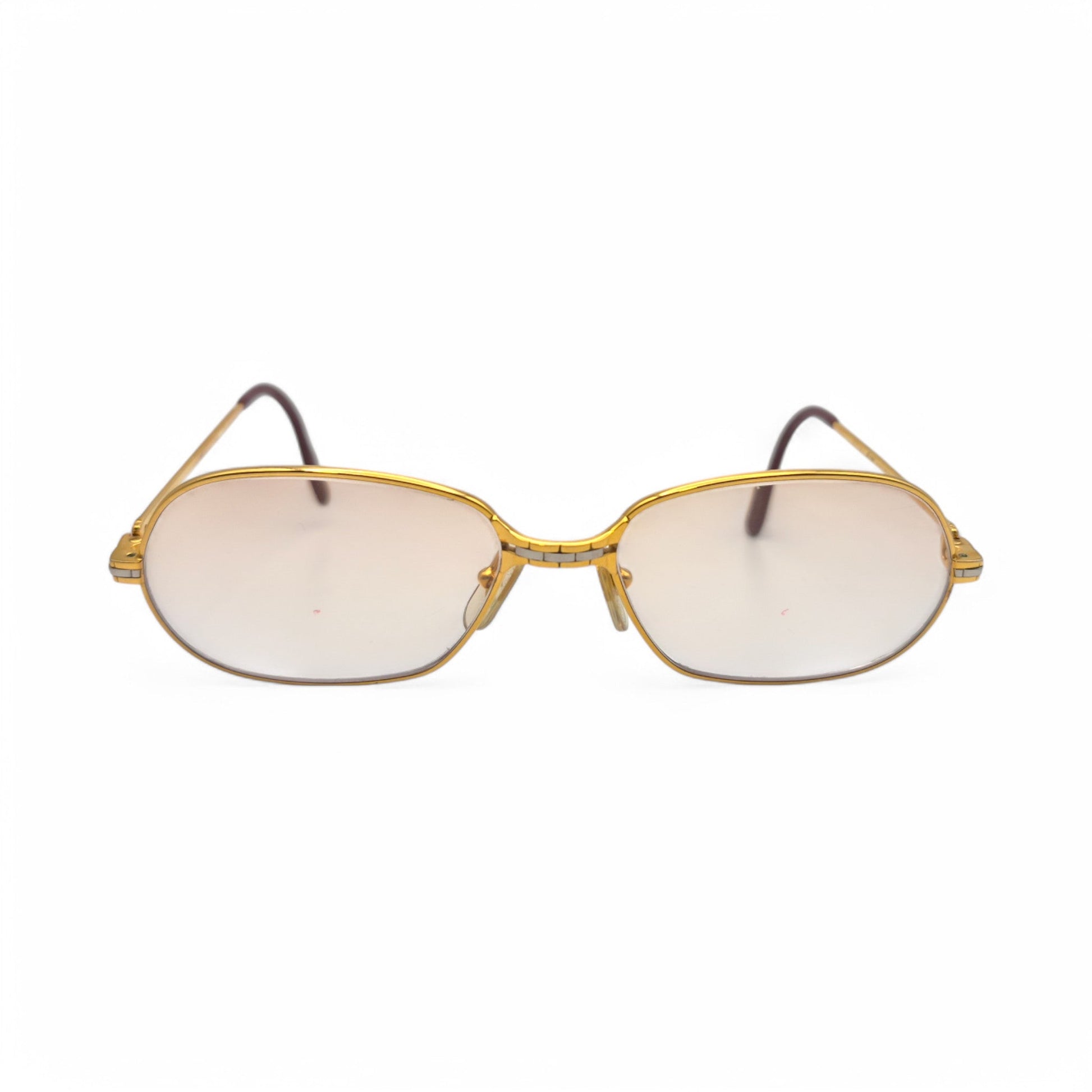 The Cartier Panthere PM eyewear represents a quintessential 1980s luxury accessory. These distinguished sunglasses showcase a refined gold-tone metallic frame complemented by oval lenses and the signature Panthere embellishment along the temples and the bridge. Designated as "P.M." (Petite Modele), they were specifically proportioned for women's facial structures. These frames belong to the prestigious Panthère de Cartier collection, which debuted in 1983 and concluded production in 2004. The Panthère series exemplifies Cartier's commitment to sophisticated aesthetics, with the panther motif serving as the house's iconic emblem throughout the collection.