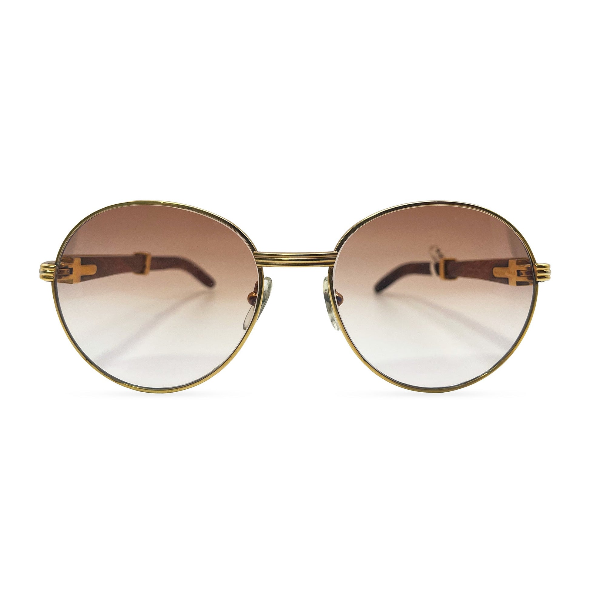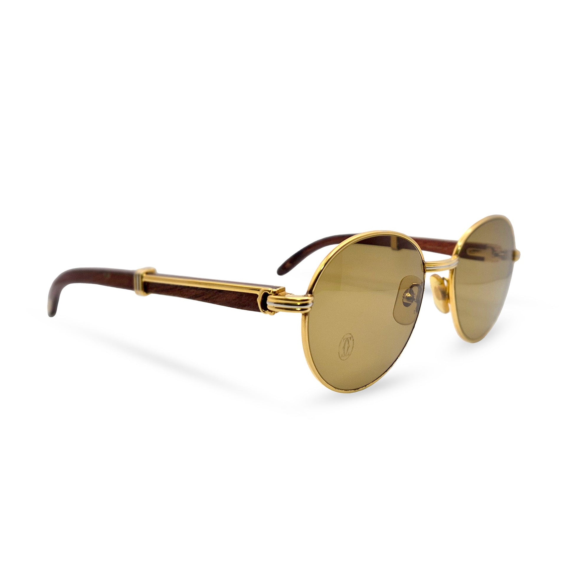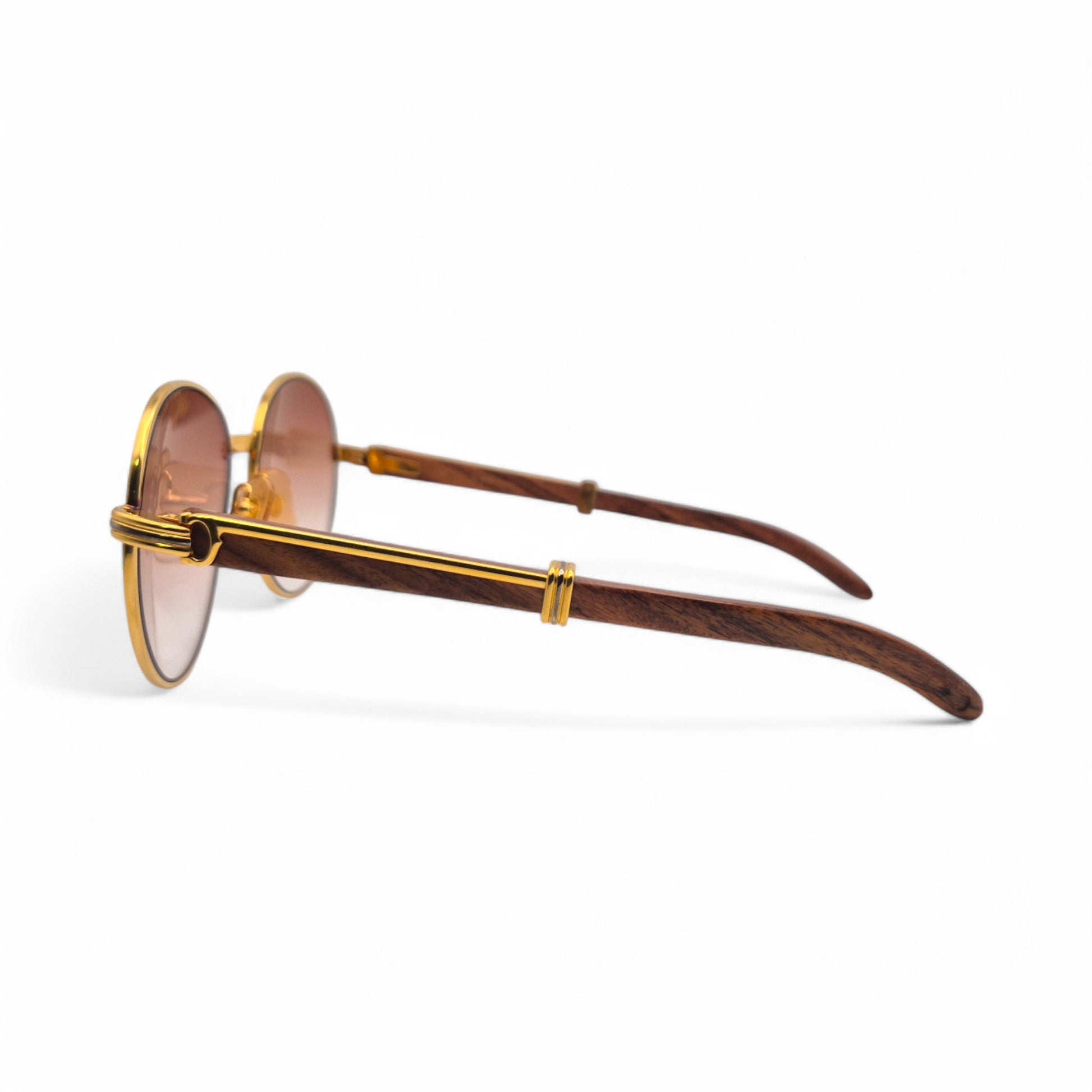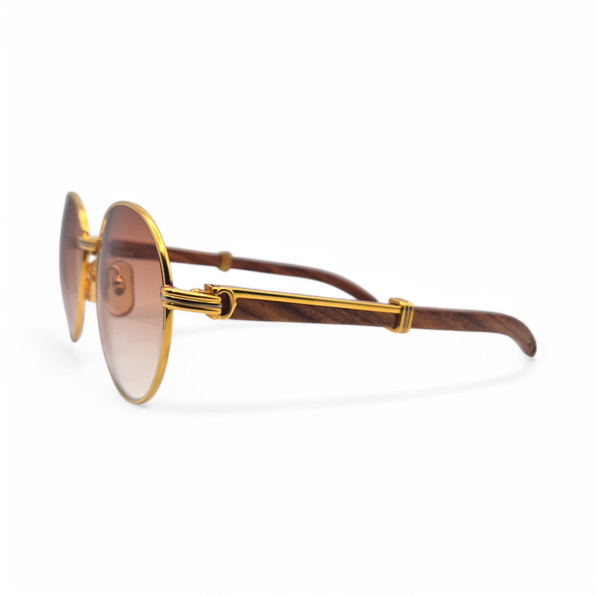 Authentic Cartier Bagatelle - 55-18 Vintage Gold Woods Sunglasses w/ Brown Lenses (90s)