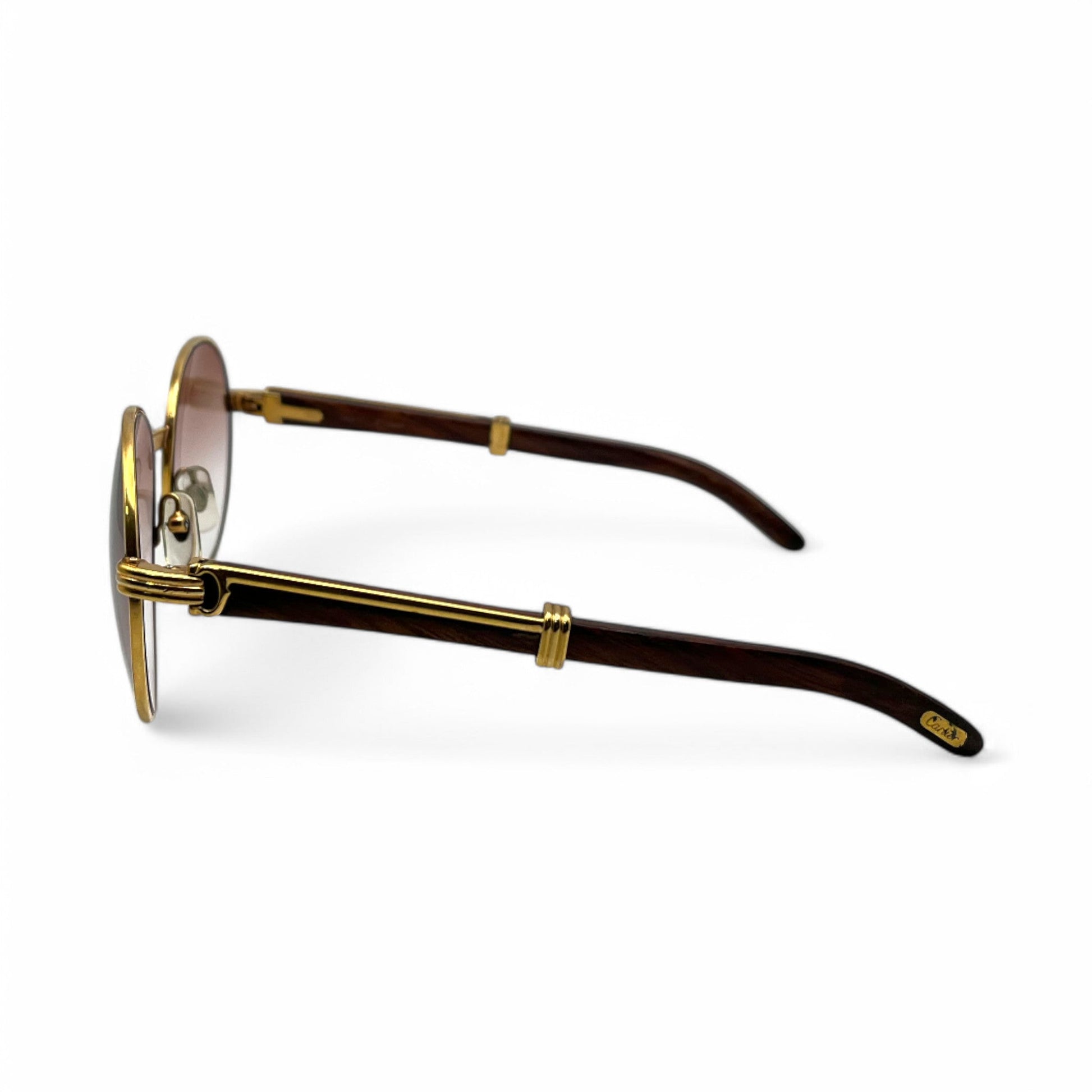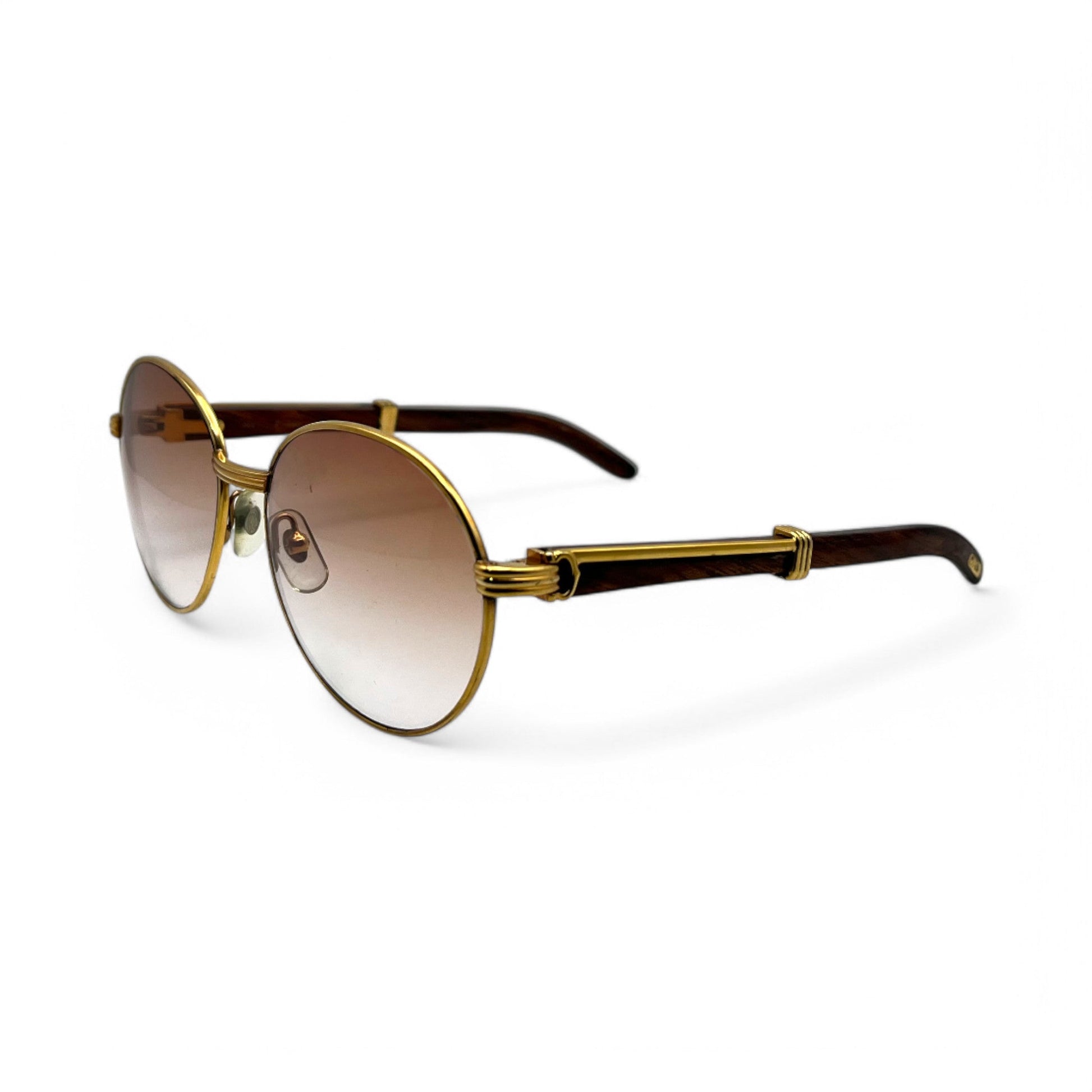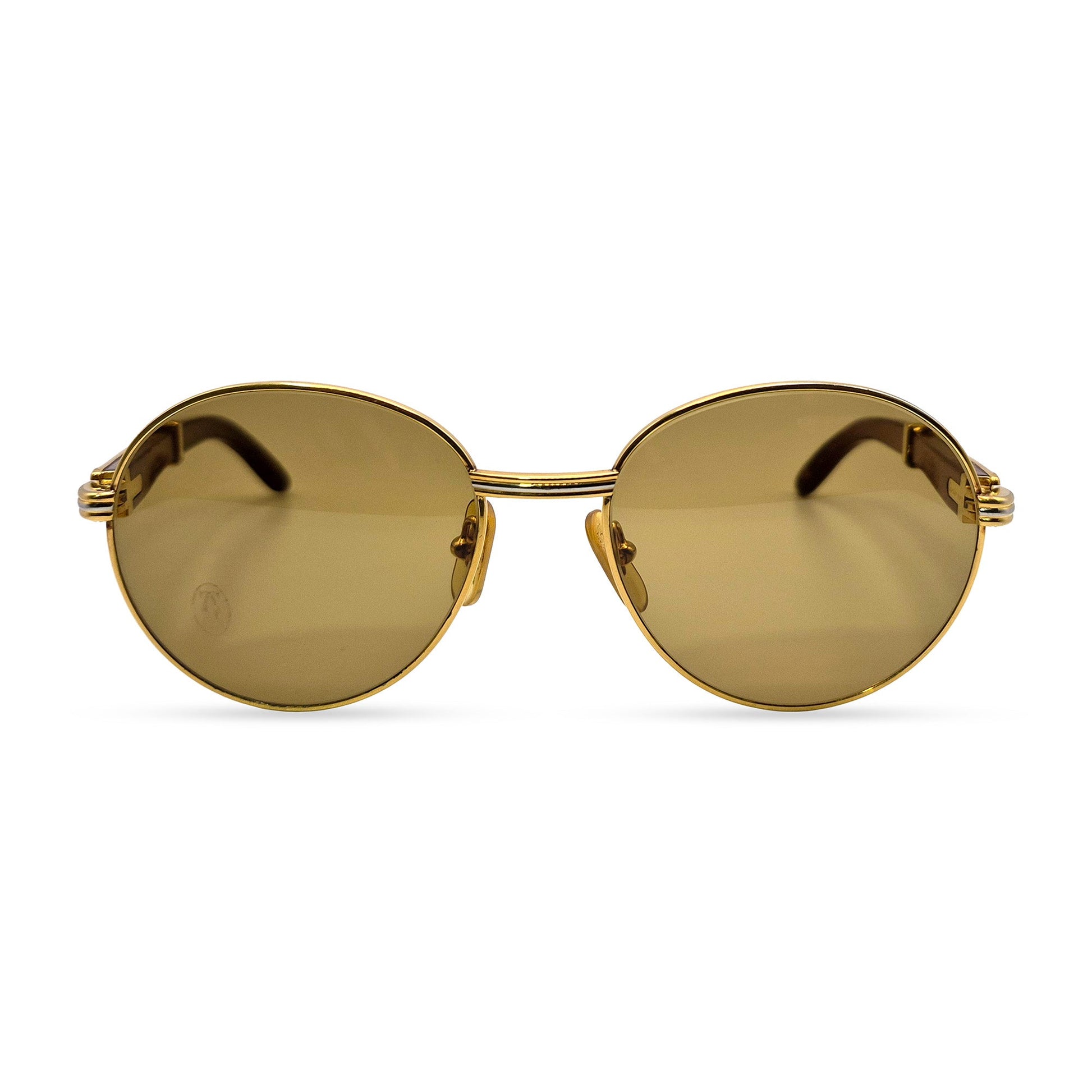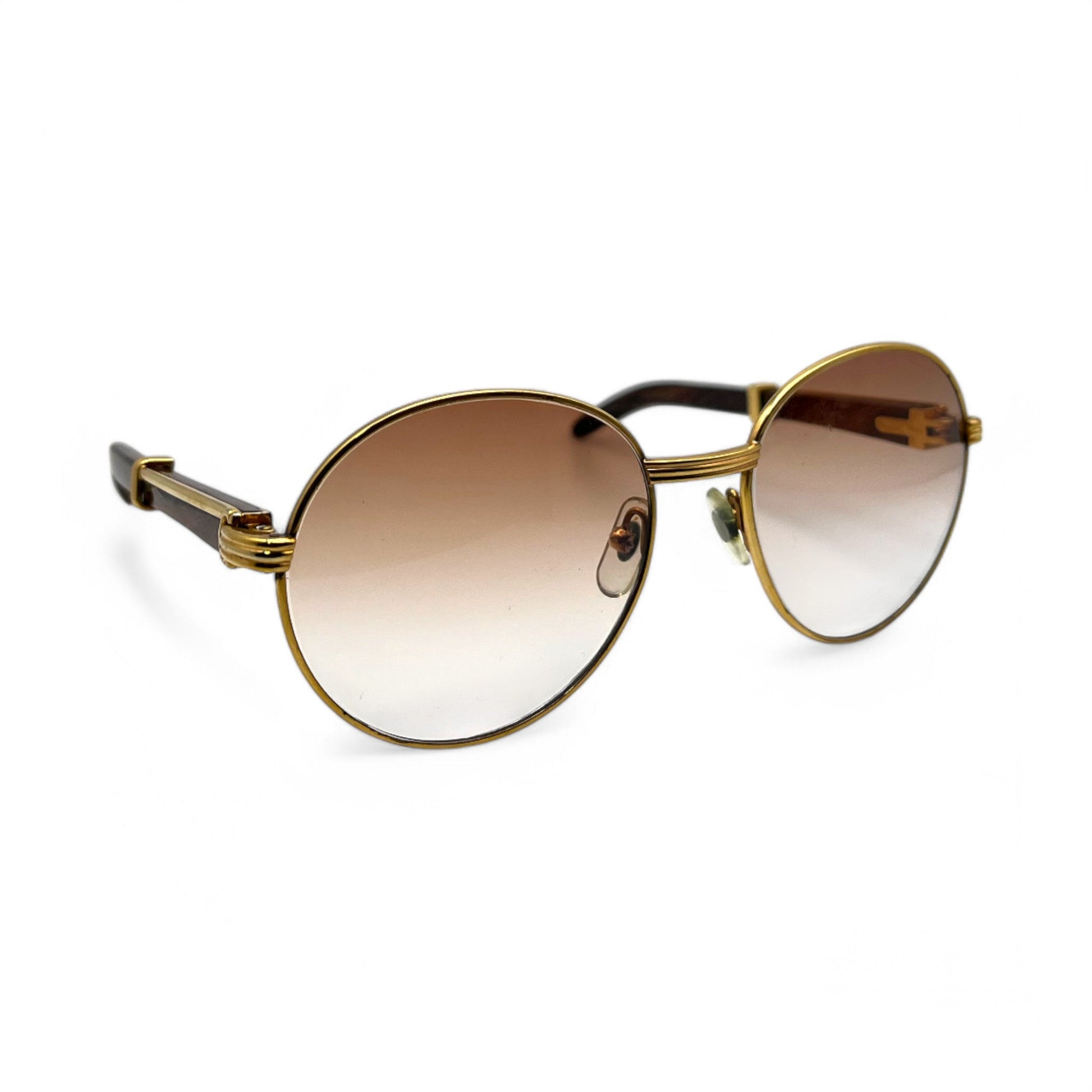 Authentic Cartier Bagatelle - 55-18 Vintage Gold Woods Sunglasses w/ Brown Lenses (90s)