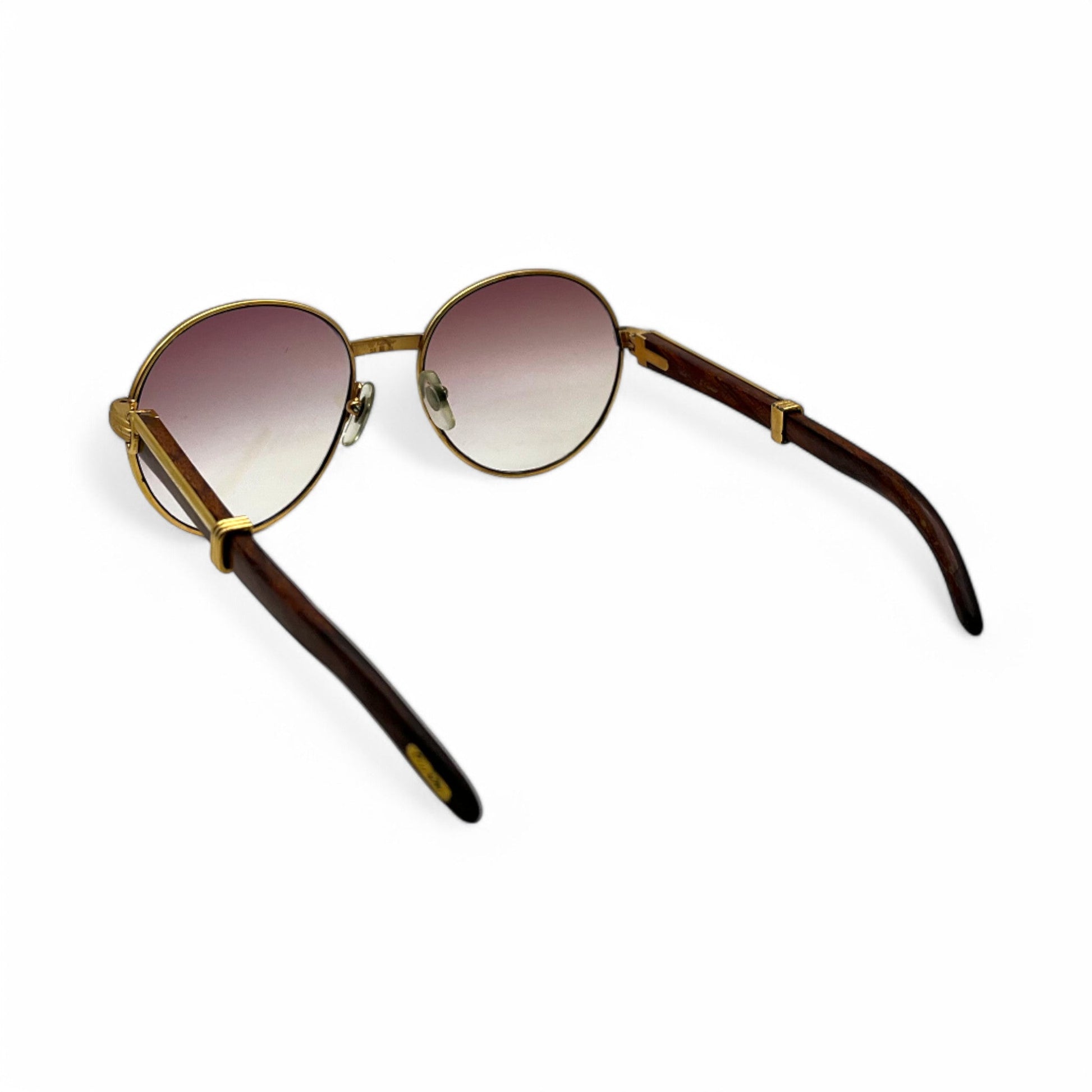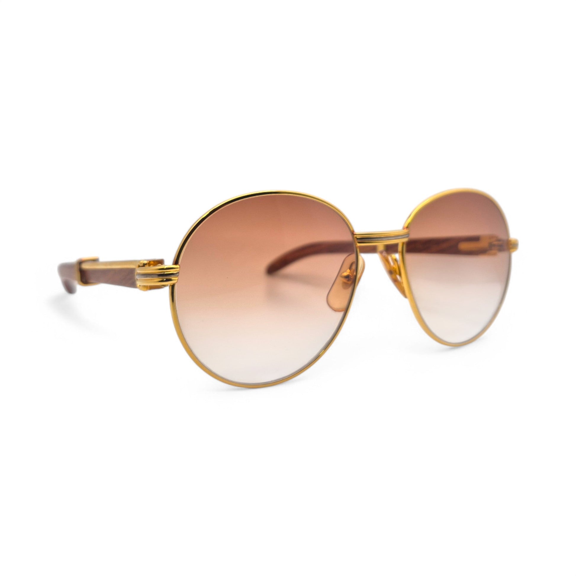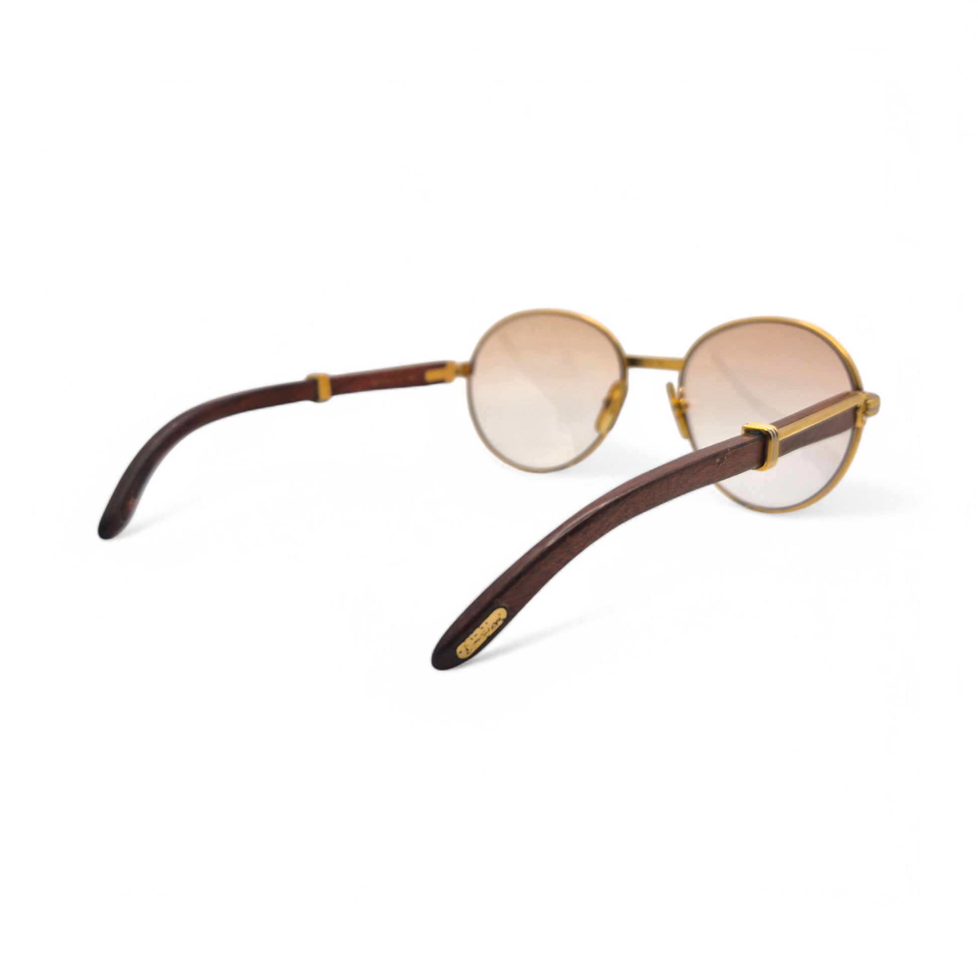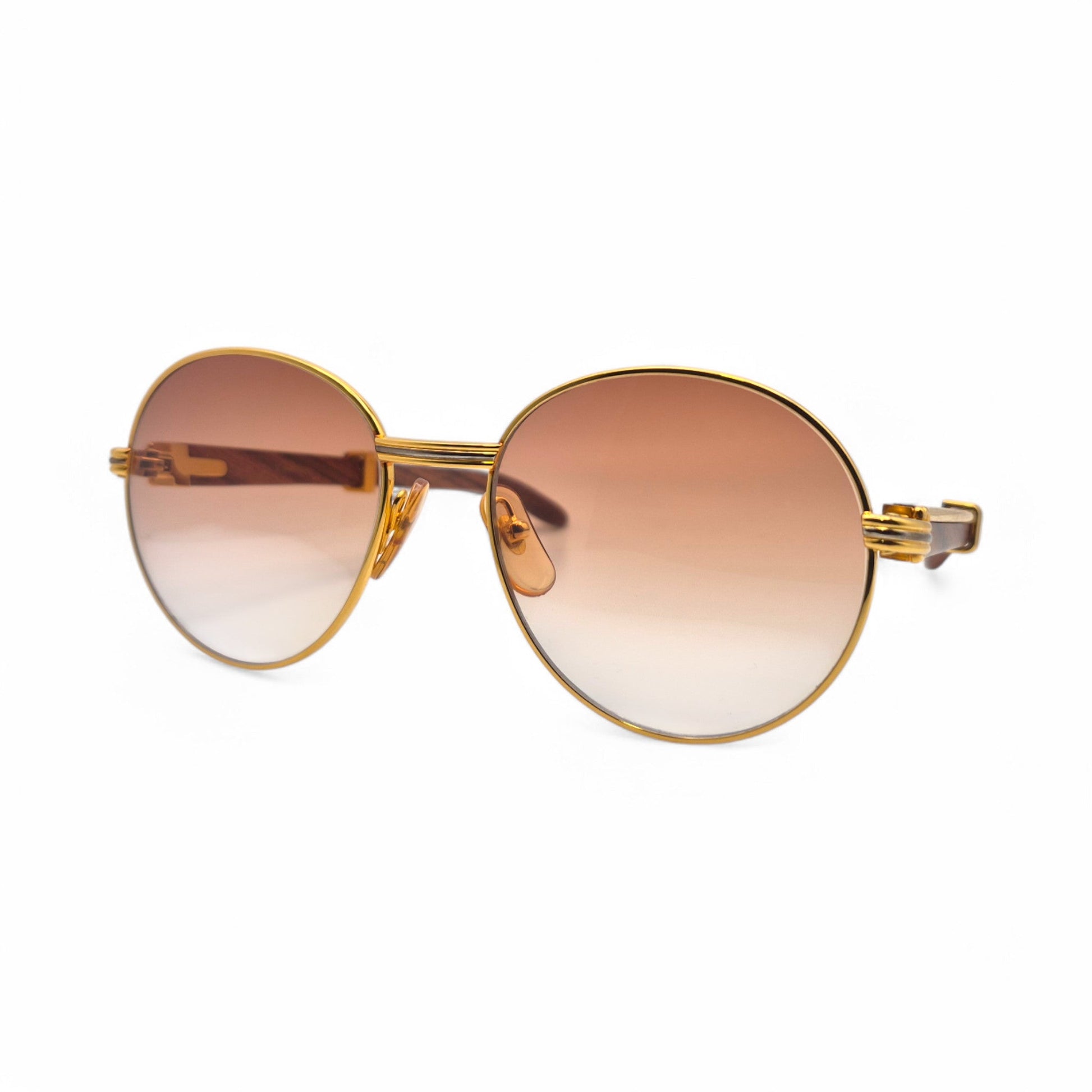 Authentic Cartier Bagatelle - 55-18 Vintage Gold Woods Sunglasses w/ Brown Lenses (90s)