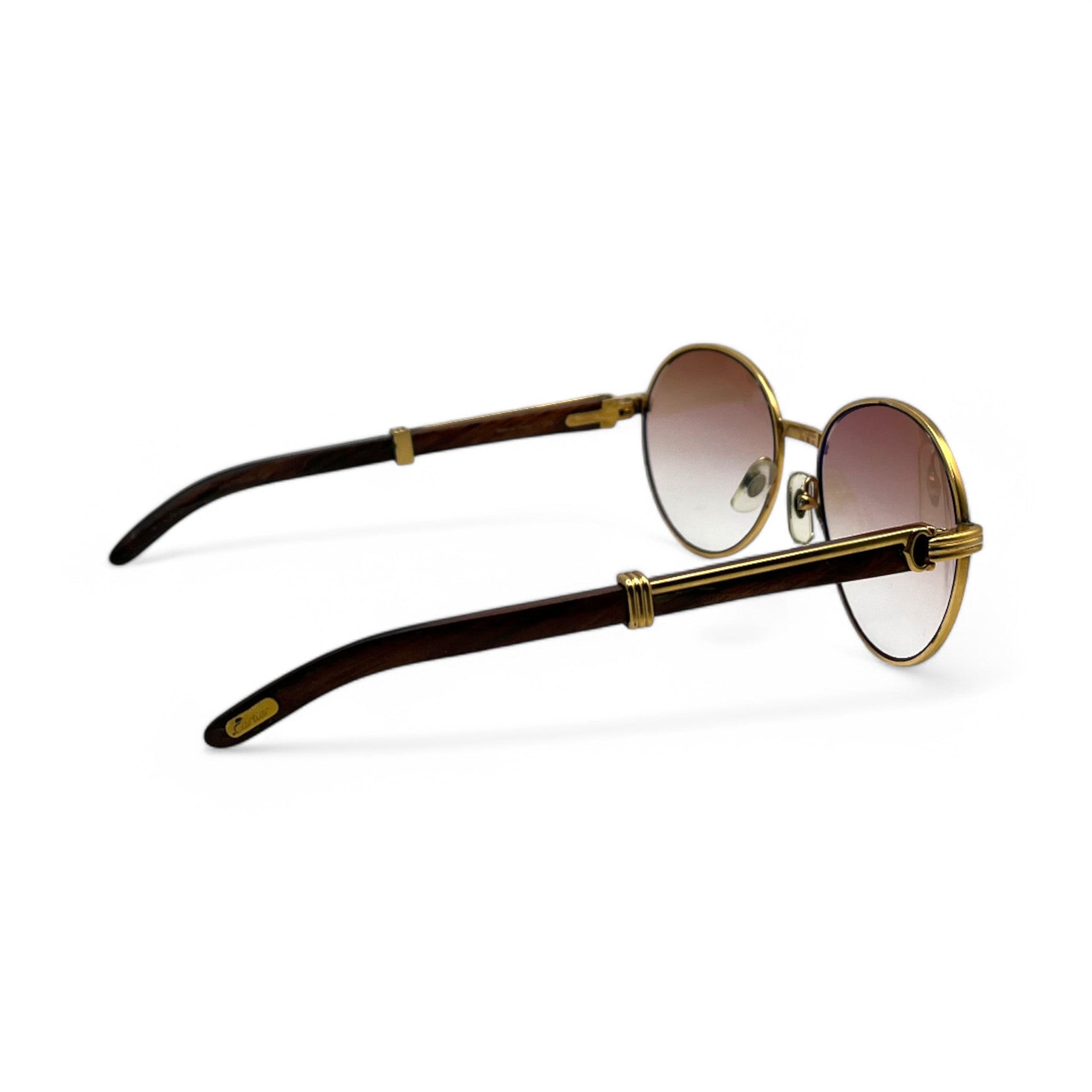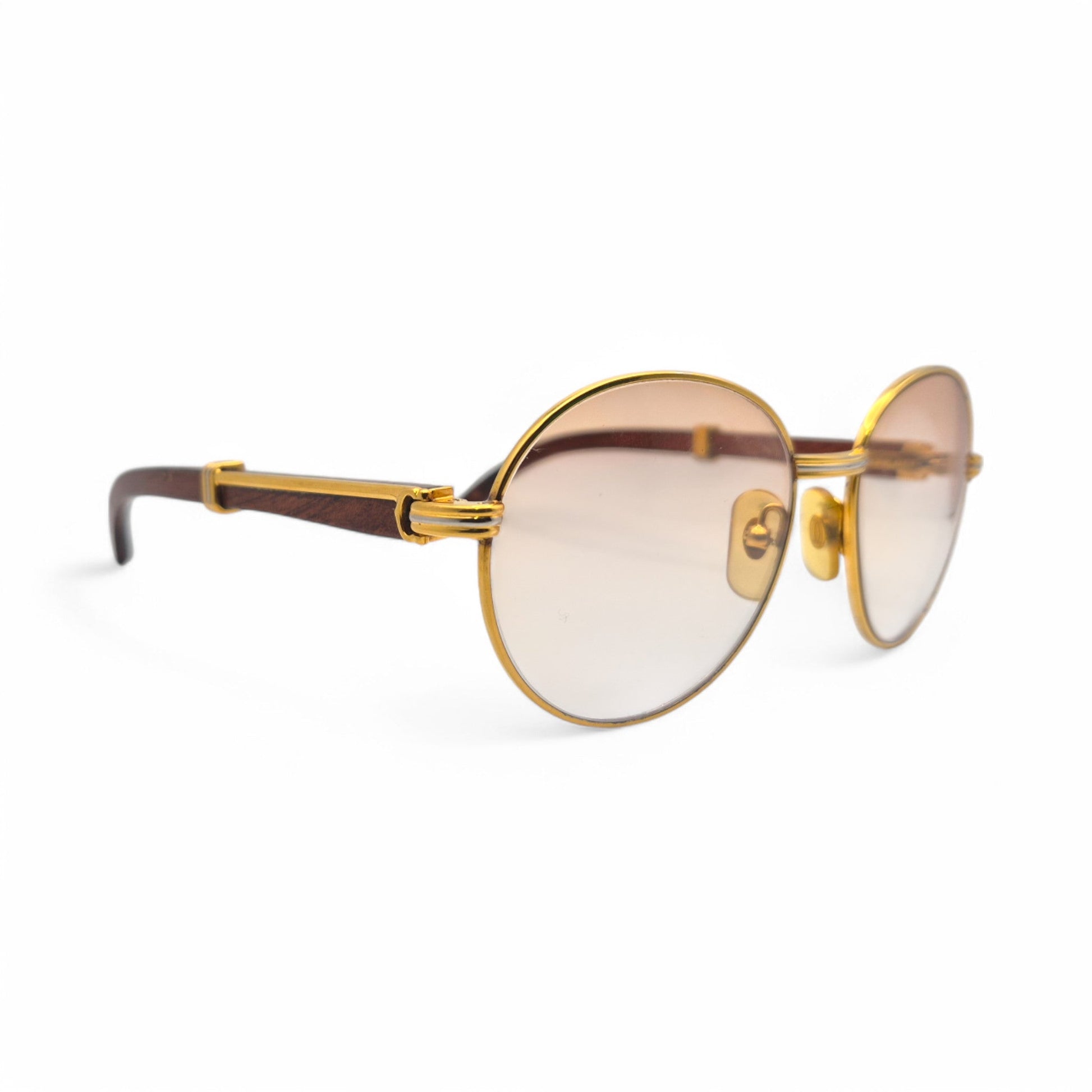 This are a high-end eyewear model recognized for their sophisticated and unique aesthetic, utilizing a blend of valuable metals and wood. These glasses showcase a traditional round shape with gold accents, frequently including the signature "C Décor" or Godron elements.