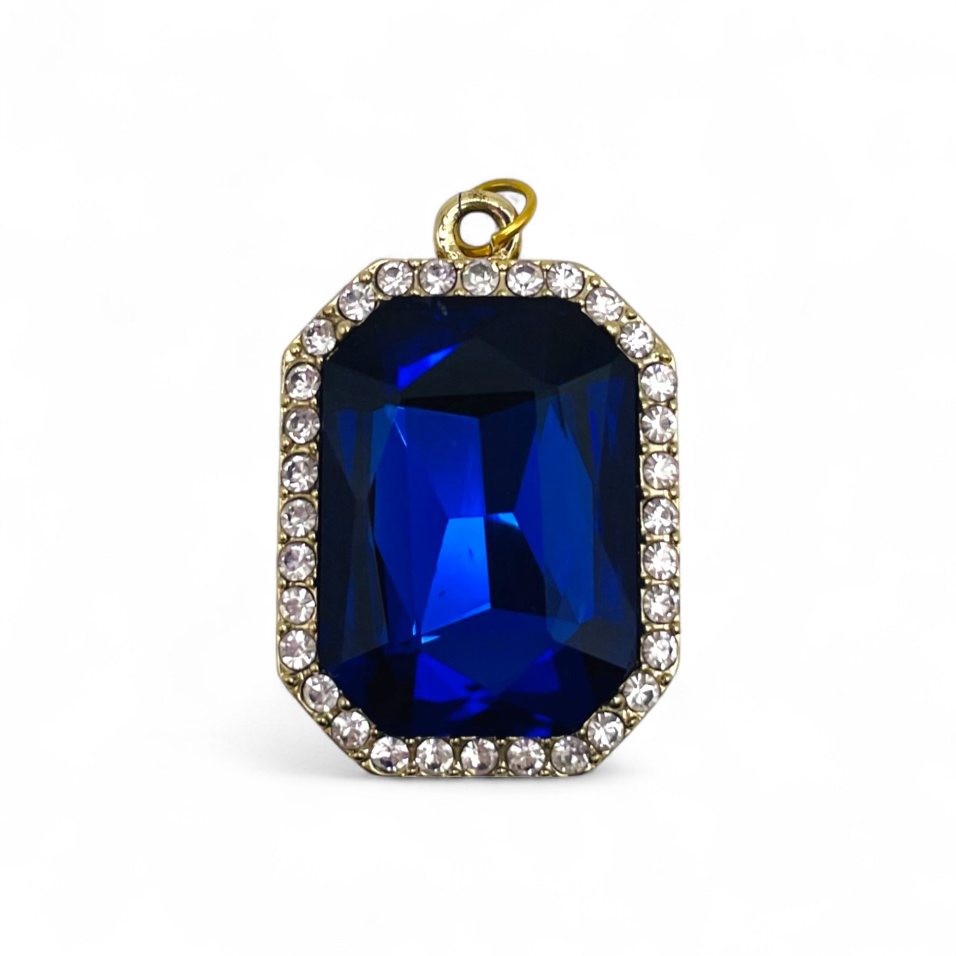 Blue Stone Pendant - 18kt Gold Plated w/ CZ Diamonds