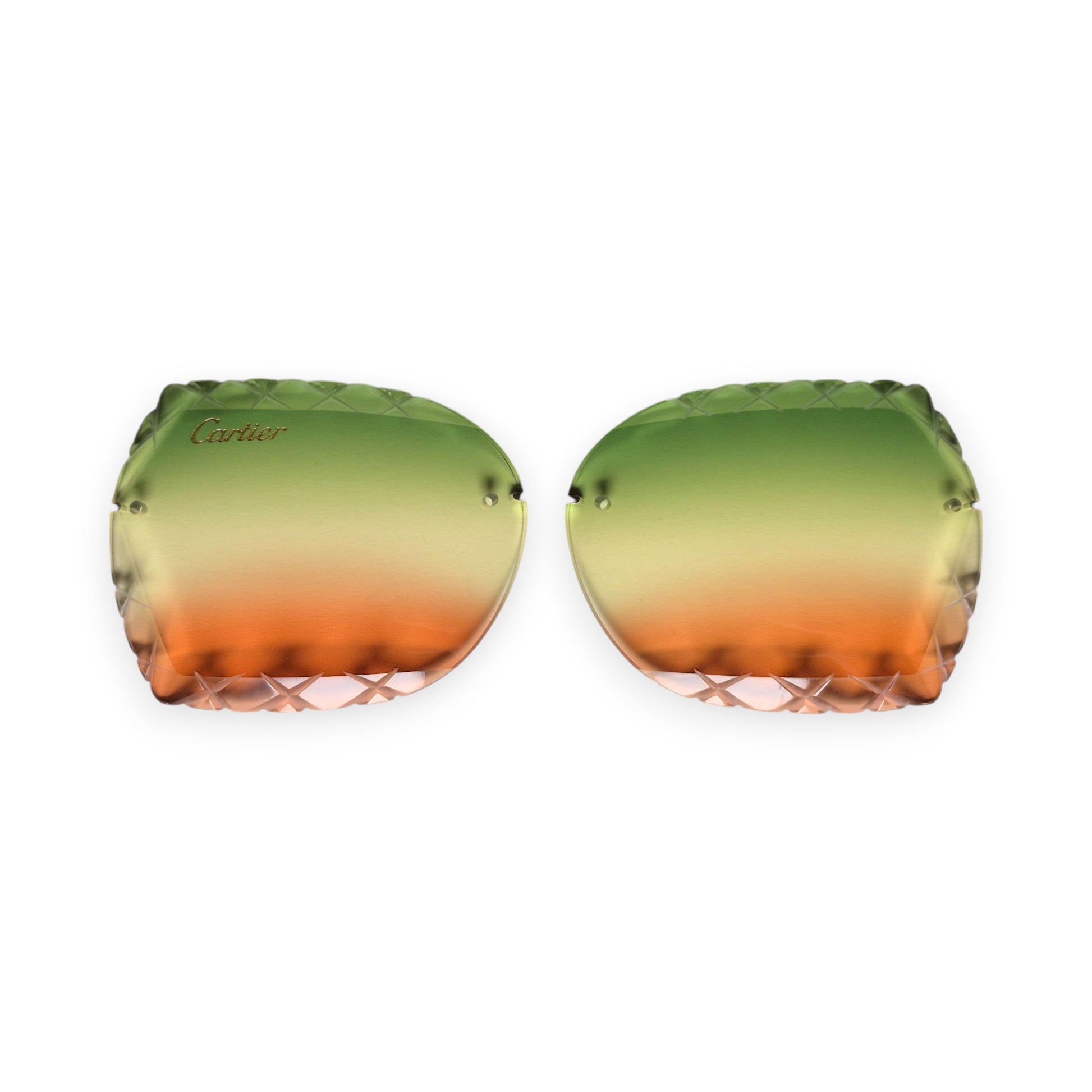 Custom pre-made green to yellow to orange gradient lenses with butterfly shape and a diamond cut, for some C Decor models (Contact us to verify the fitting on your desired model)