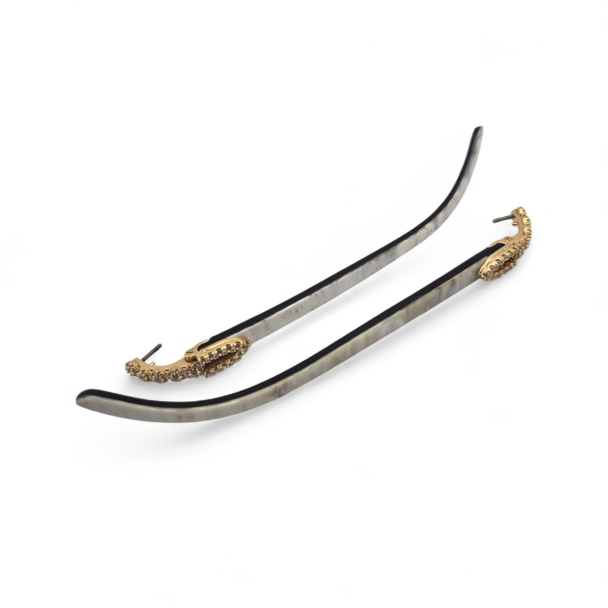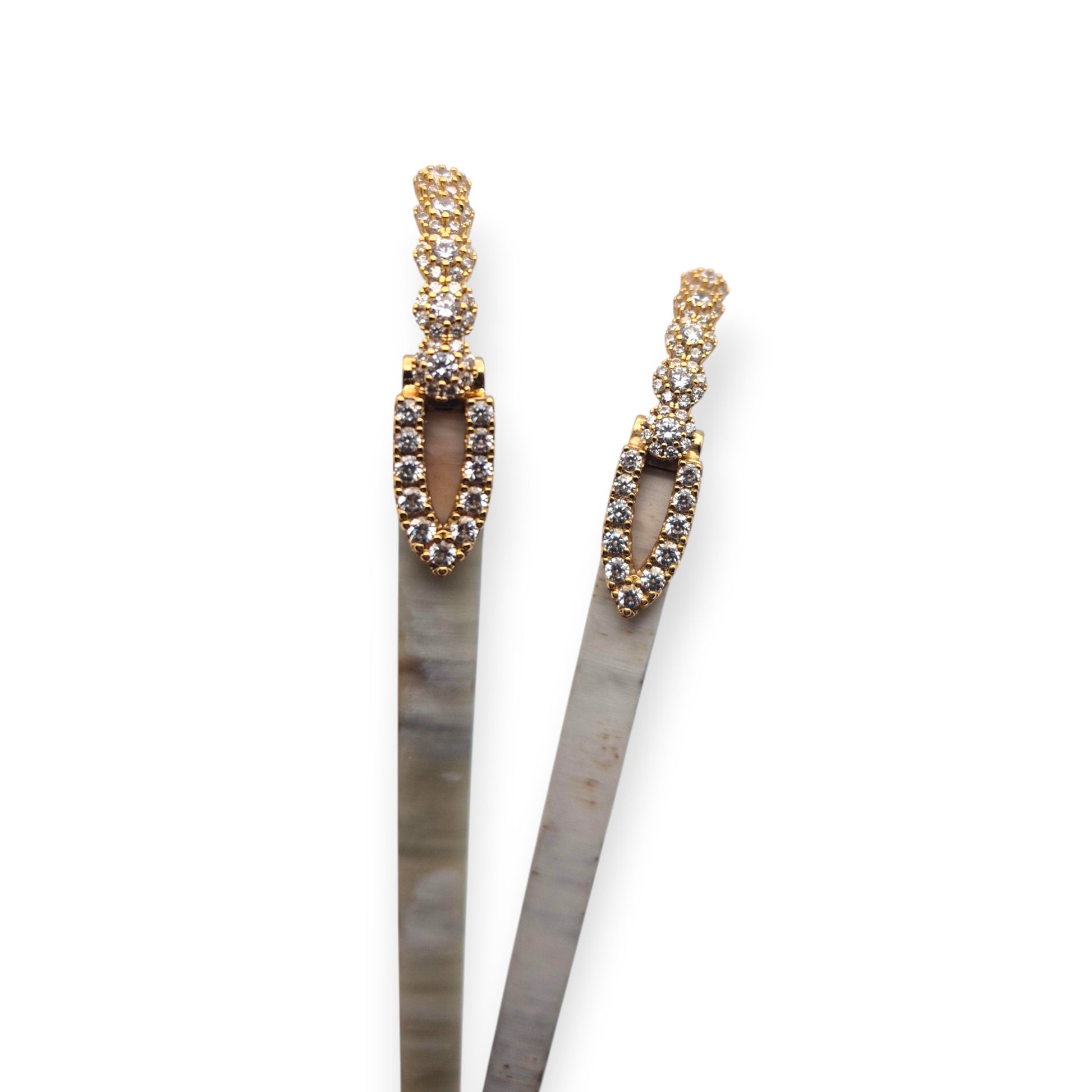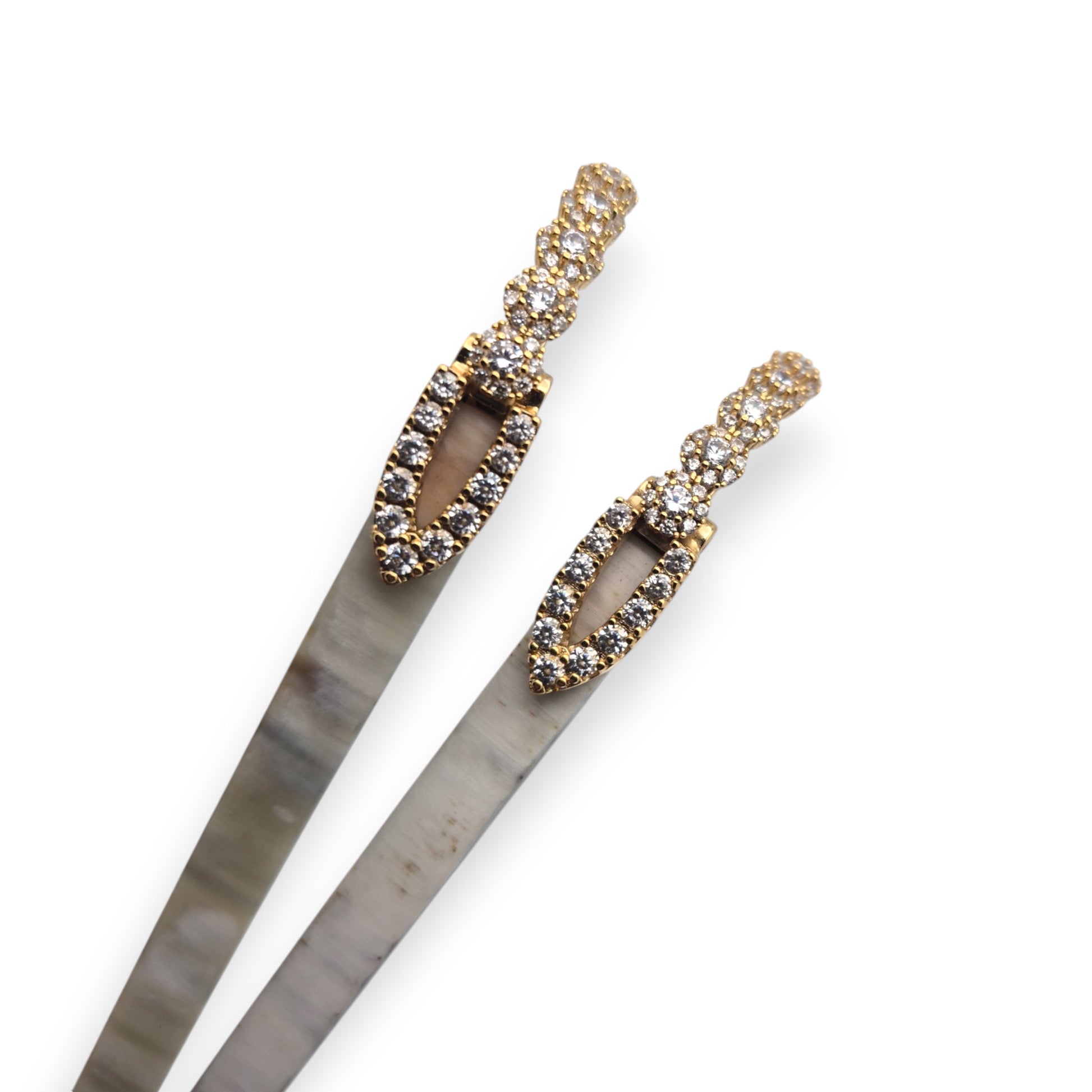 This white genuine horn temples with white swirls fits some C Decor models and comes with gold iced out hinges with a CZ diamonds flower set.