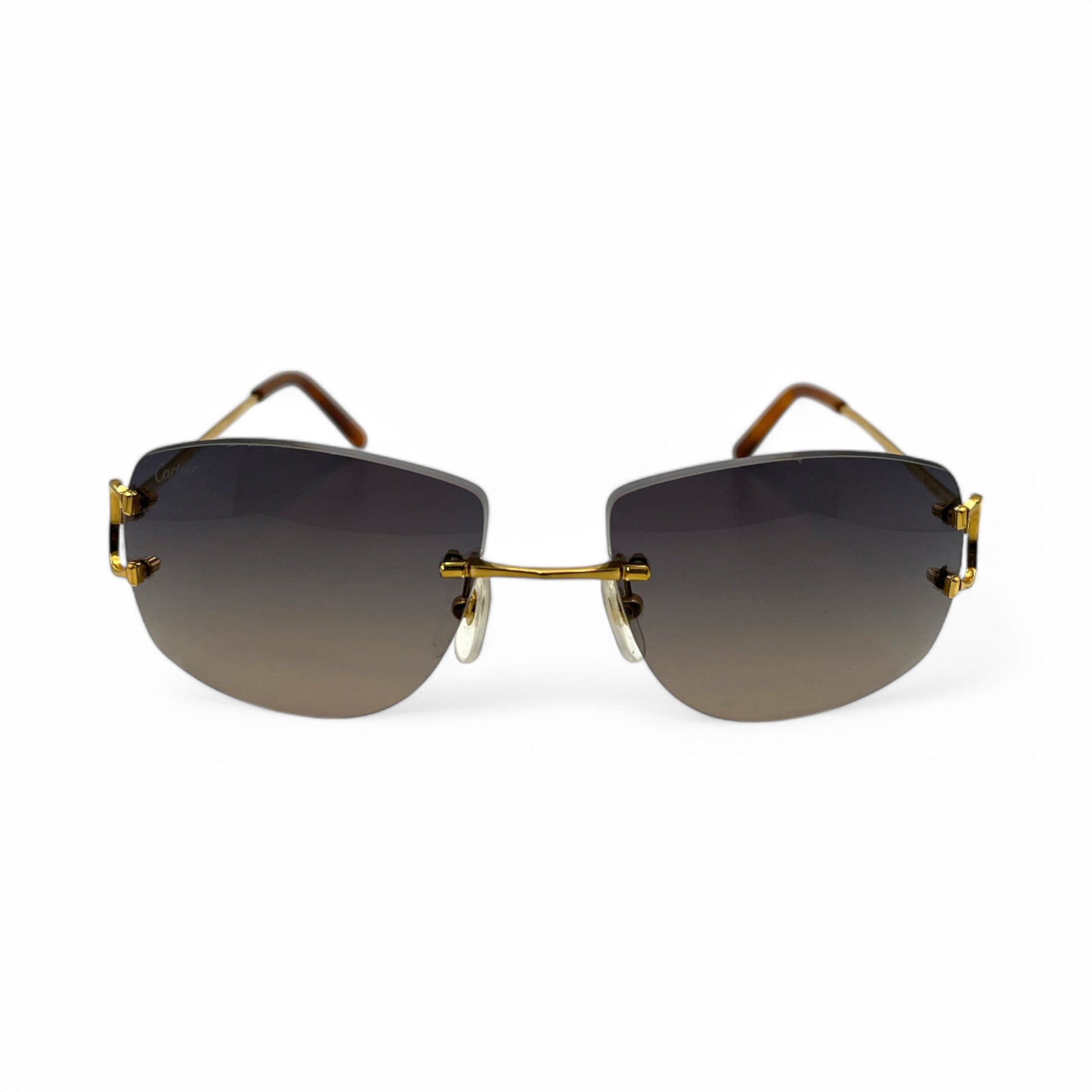 CT0008RS Authentic Cartier Big C - Gold Wires Sunglasses w/ Dark Gray to Tan Gradient Lenses (2010s)