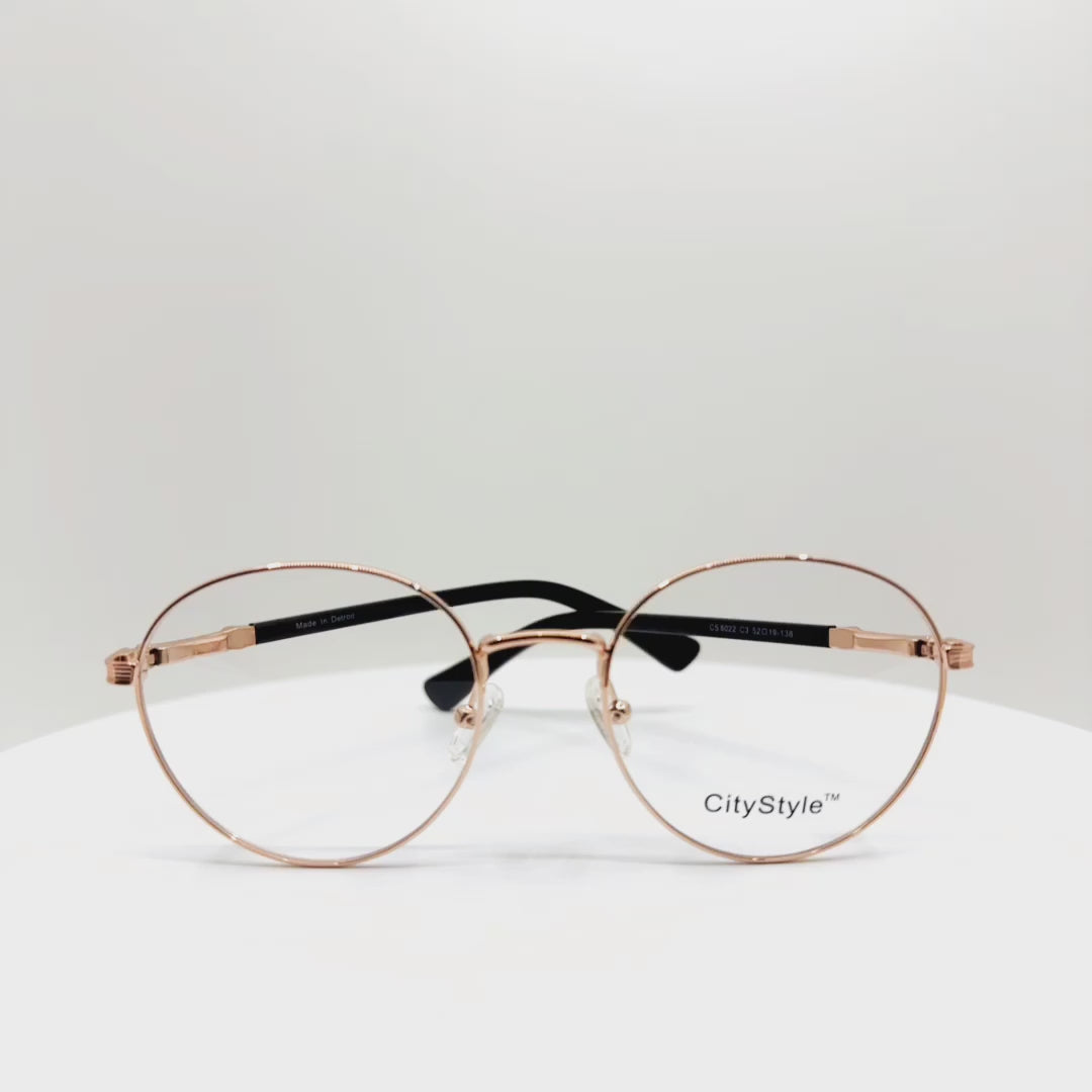 Our CityStyle™ 8022 eyeglasses fits everybody's face, featuring high quality spring hinges for perfect flexibility. They have oval lenses, all within a full frame. Available in multiple gold variants, also in silver.