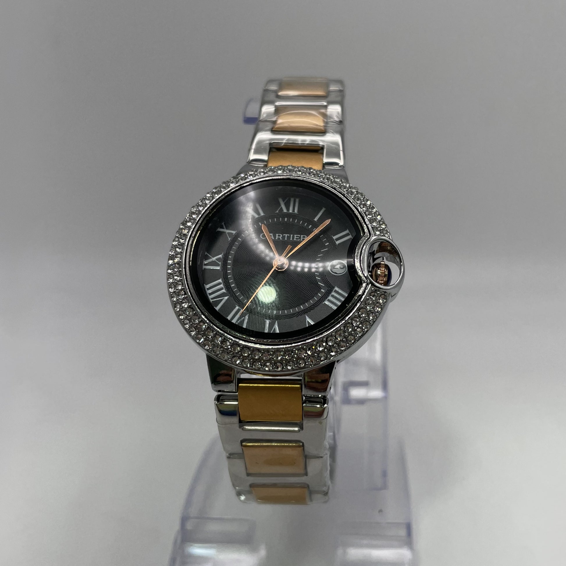 Crtr Ballon - Steel Case w/ Black Dial and Diamonds Bezel - Two Tone Steel Band