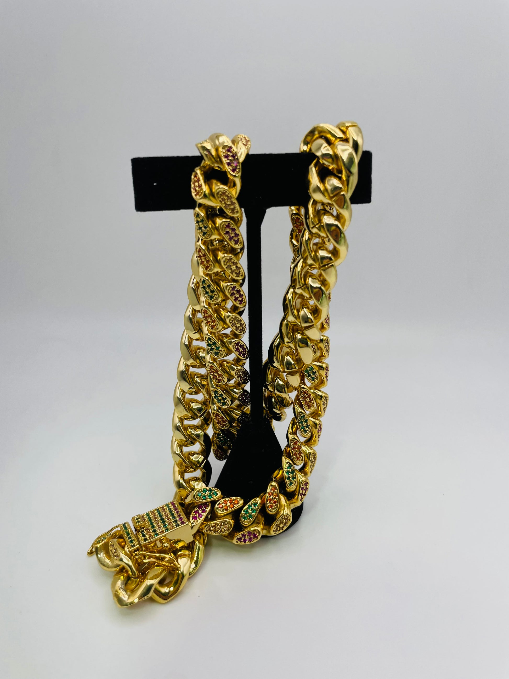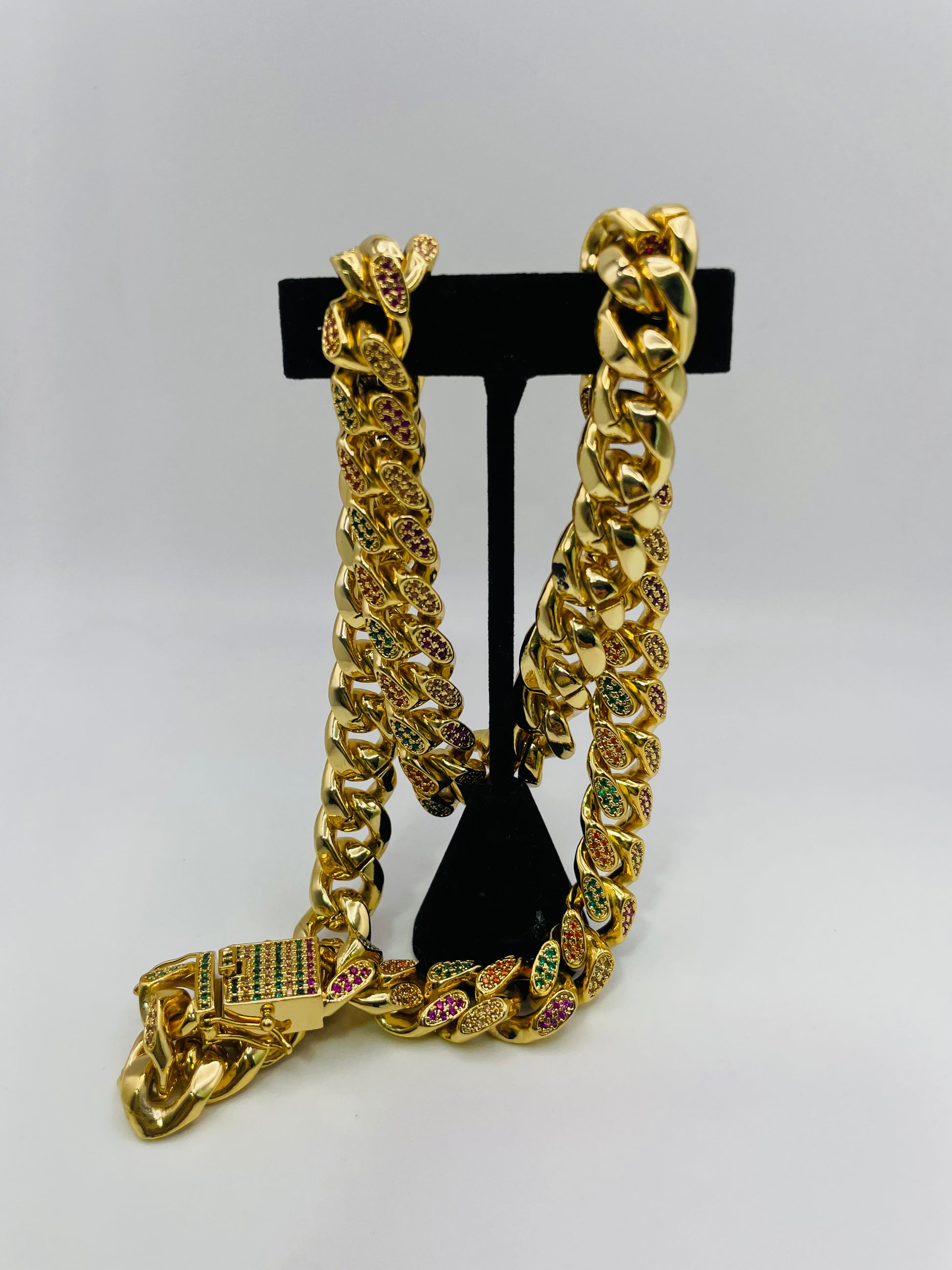 Cuban Chain - Gold w/ Color Stones