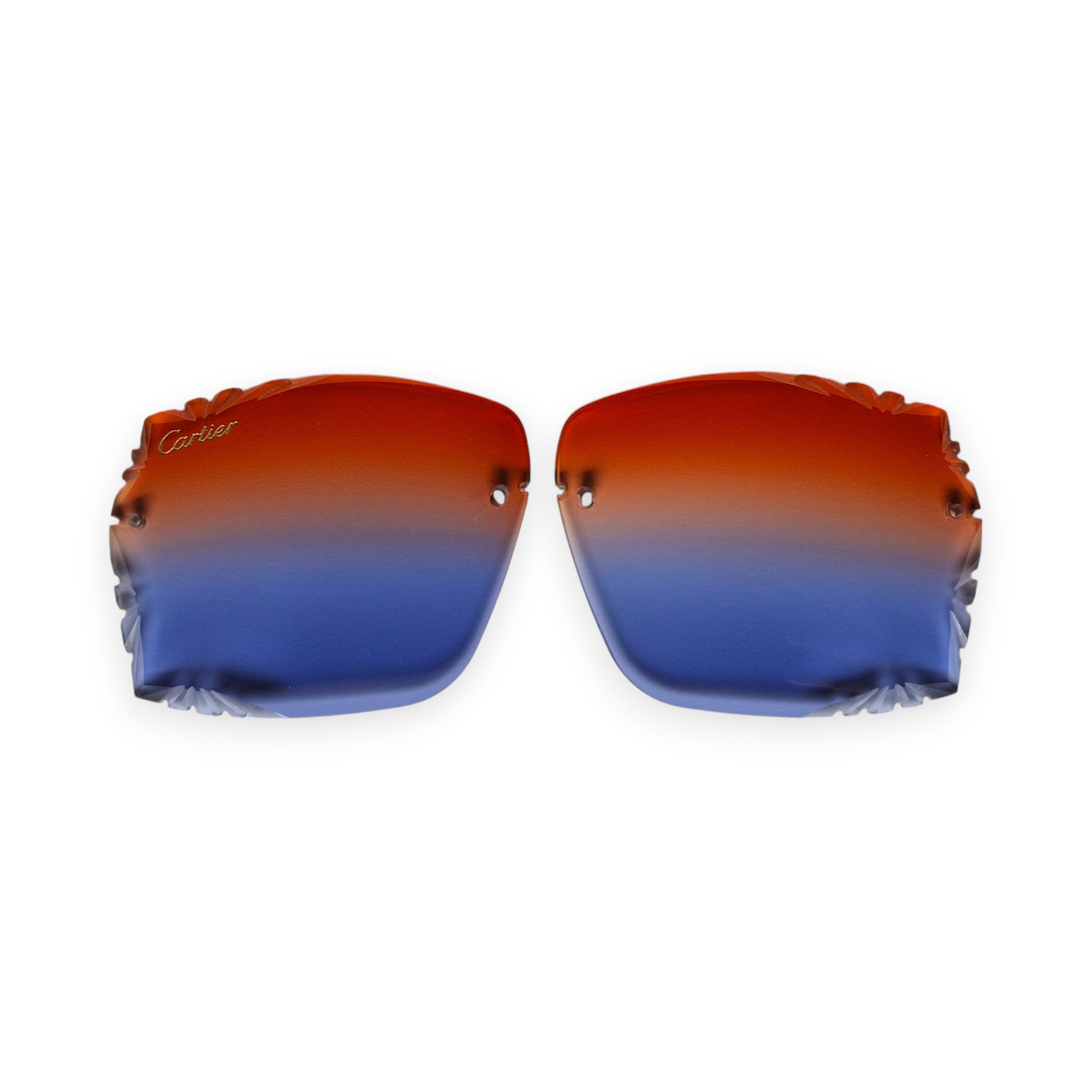 Custom pre-made orange to blue gradient lenses with custom shape and a diamond cut, for some C Decor models (Contact us to verify the fitting on your desired model)