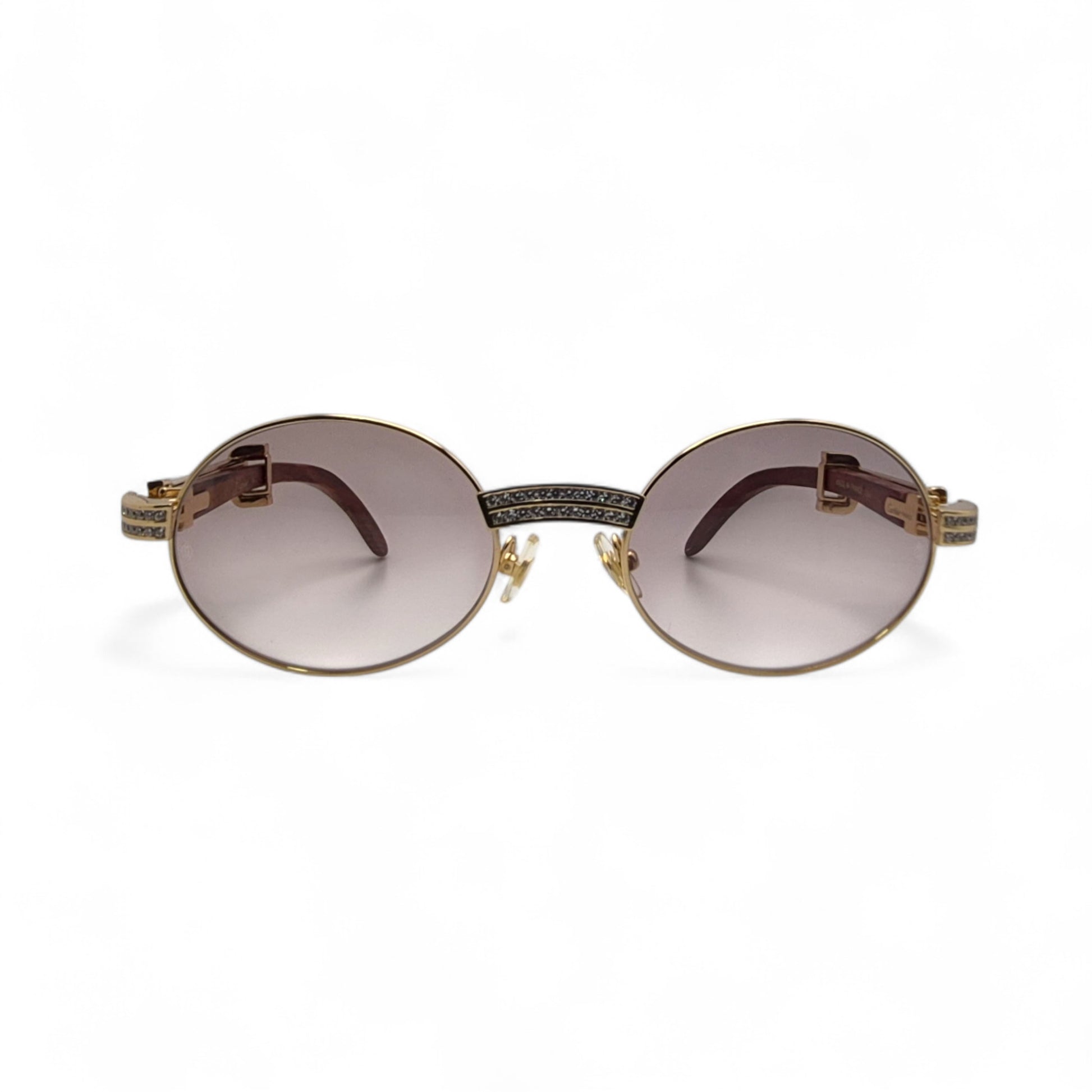 Giverny (Iced) - 55-22 Gold Woods Sunglasses w/ Brown Lenses - Diamond Set (90s)