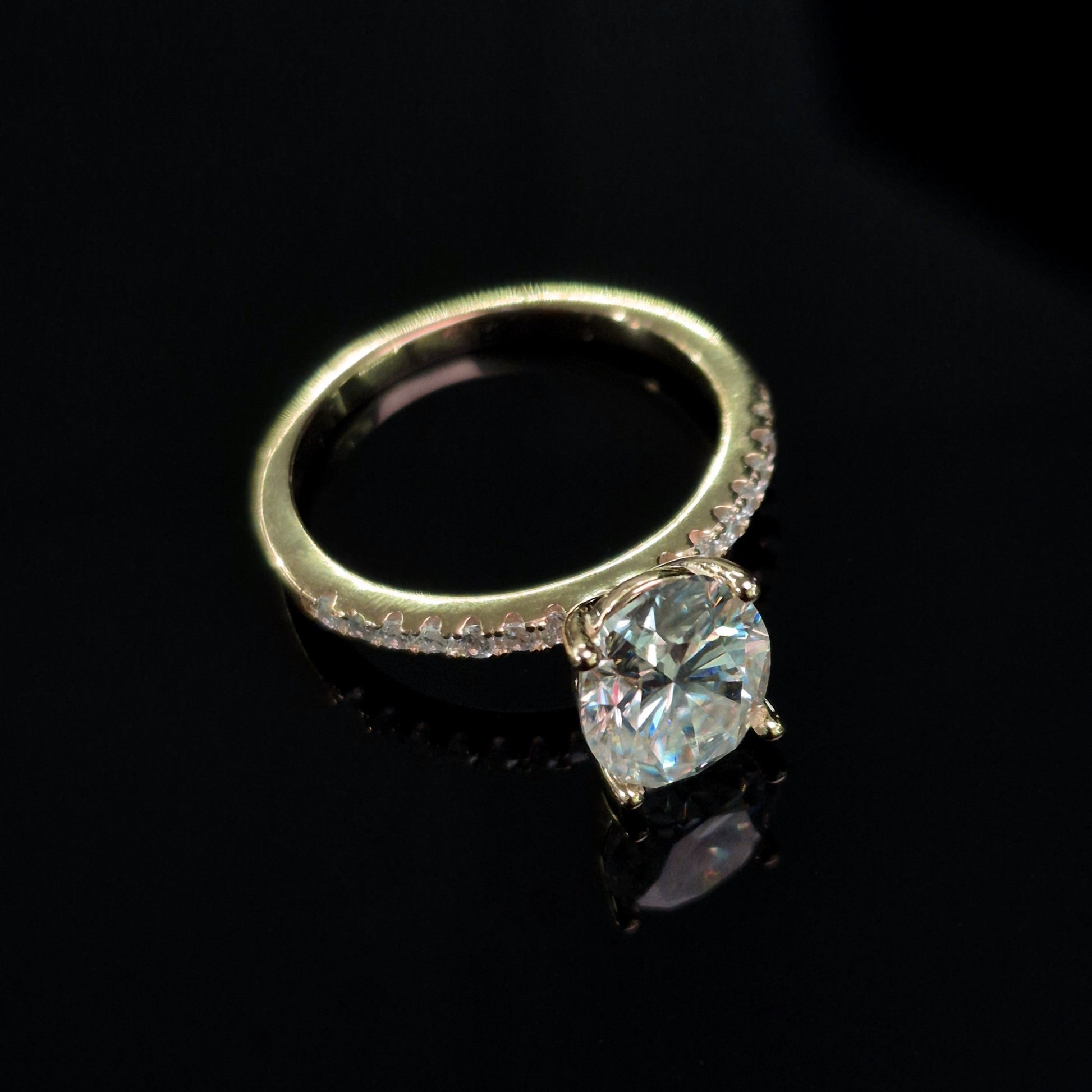 S925 Gold Solitaire Moissanite Diamond Ring & Band - 2pc Set