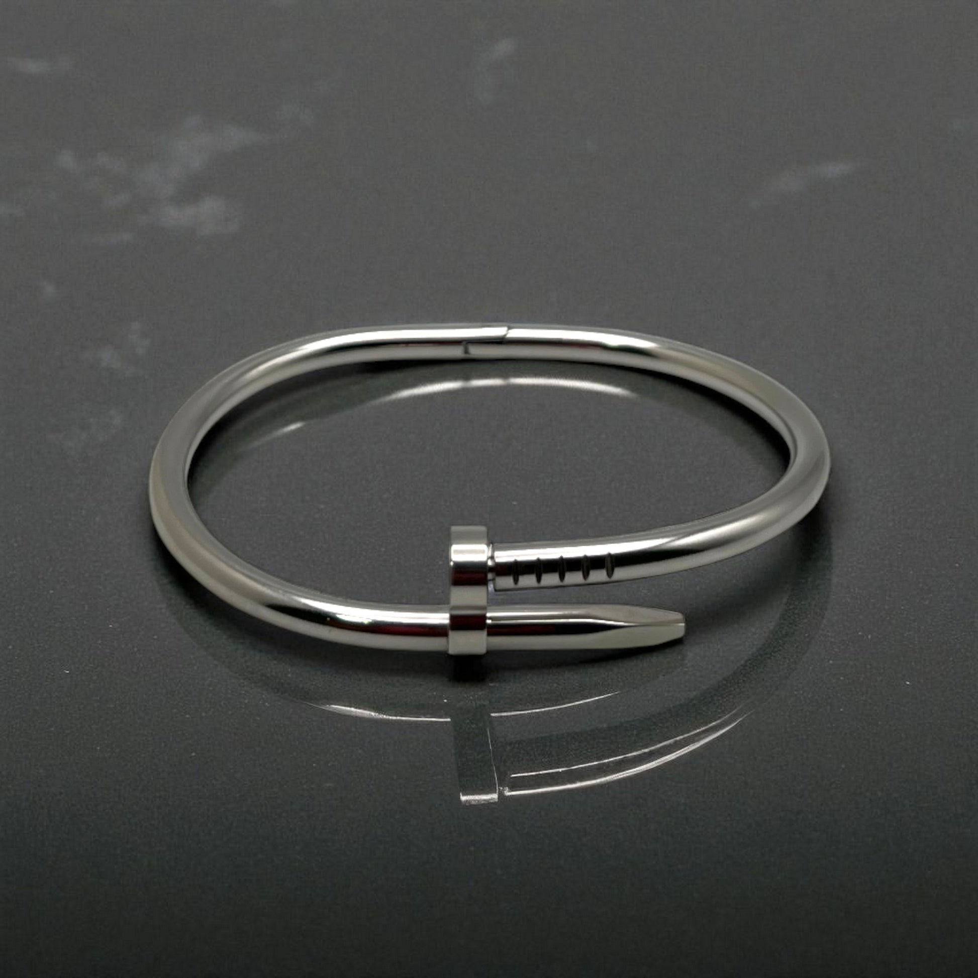 The Silver Nail Cuff Bracelet combines modern design with delicate charm, featuring a unique heart shape elegantly integrated into its sculptural form. This piece offers a refined and sophisticated look that enhances any outfit. Its open cuff design ensures a comfortable fit, making it an ideal accessory for those seeking understated luxury with a touch of romance.
