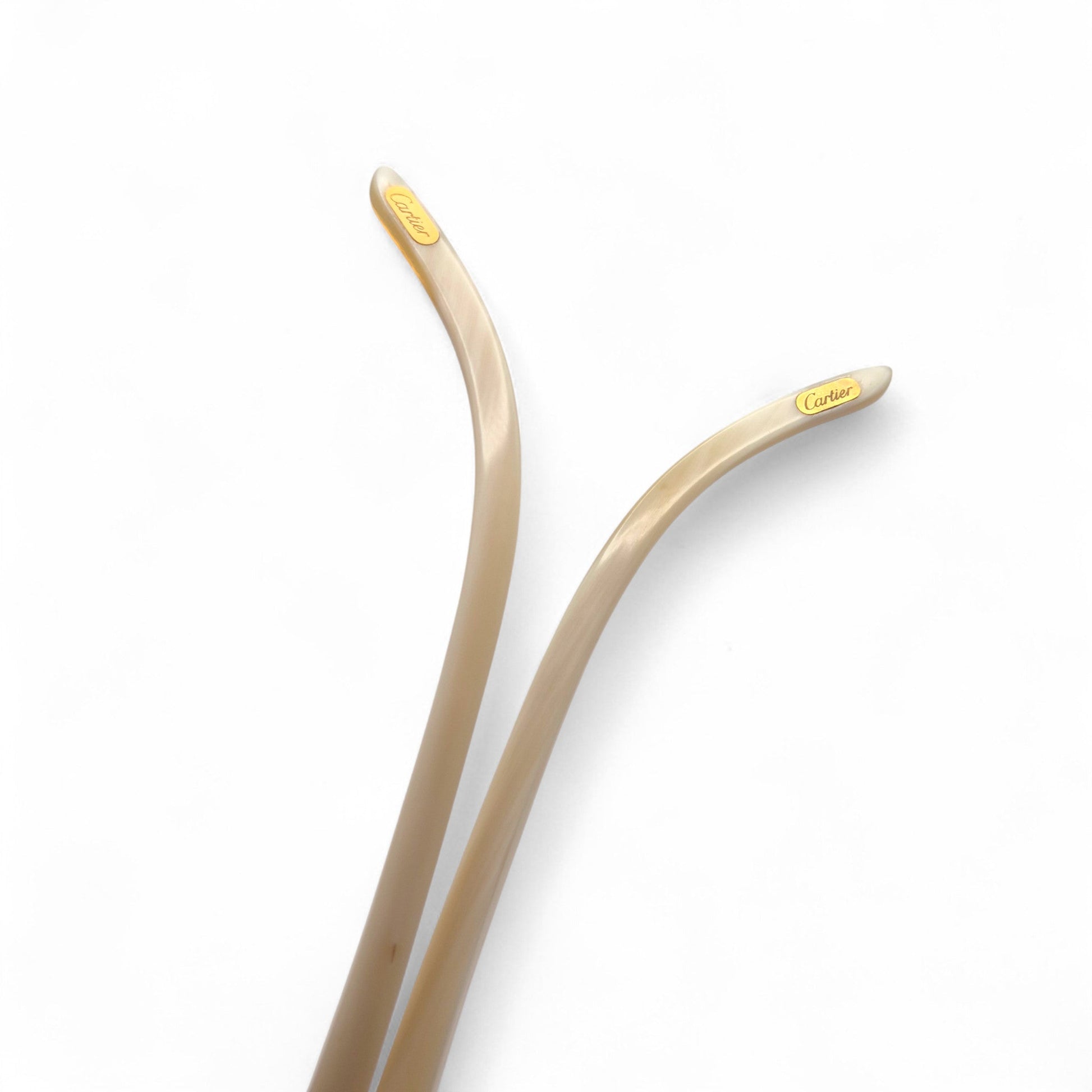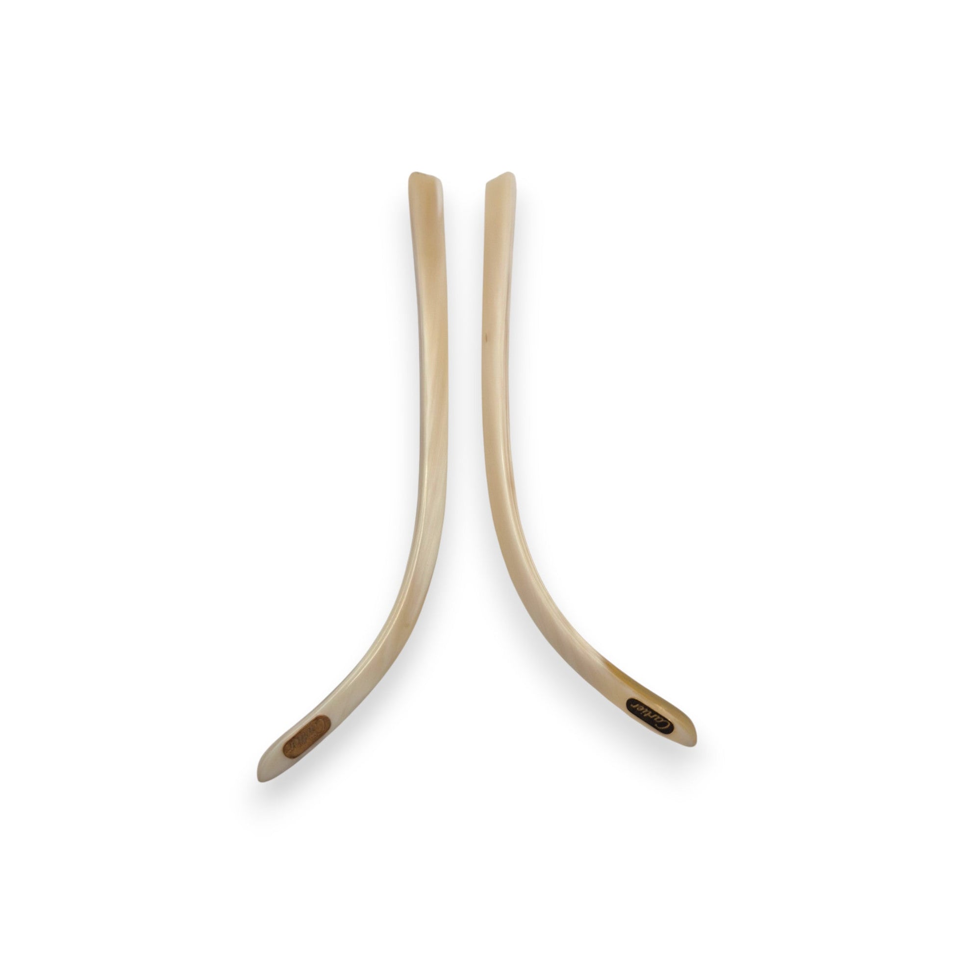 This polished off-white temples fits most aftermarket Giverny 49-55 full rim frames with wood and horn.