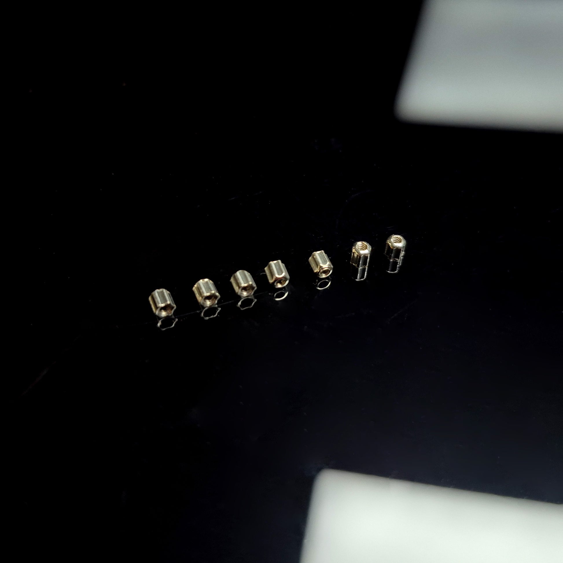 Open whole metal caps for screws. They are great for extra thread, also needed for short screw tightenings.