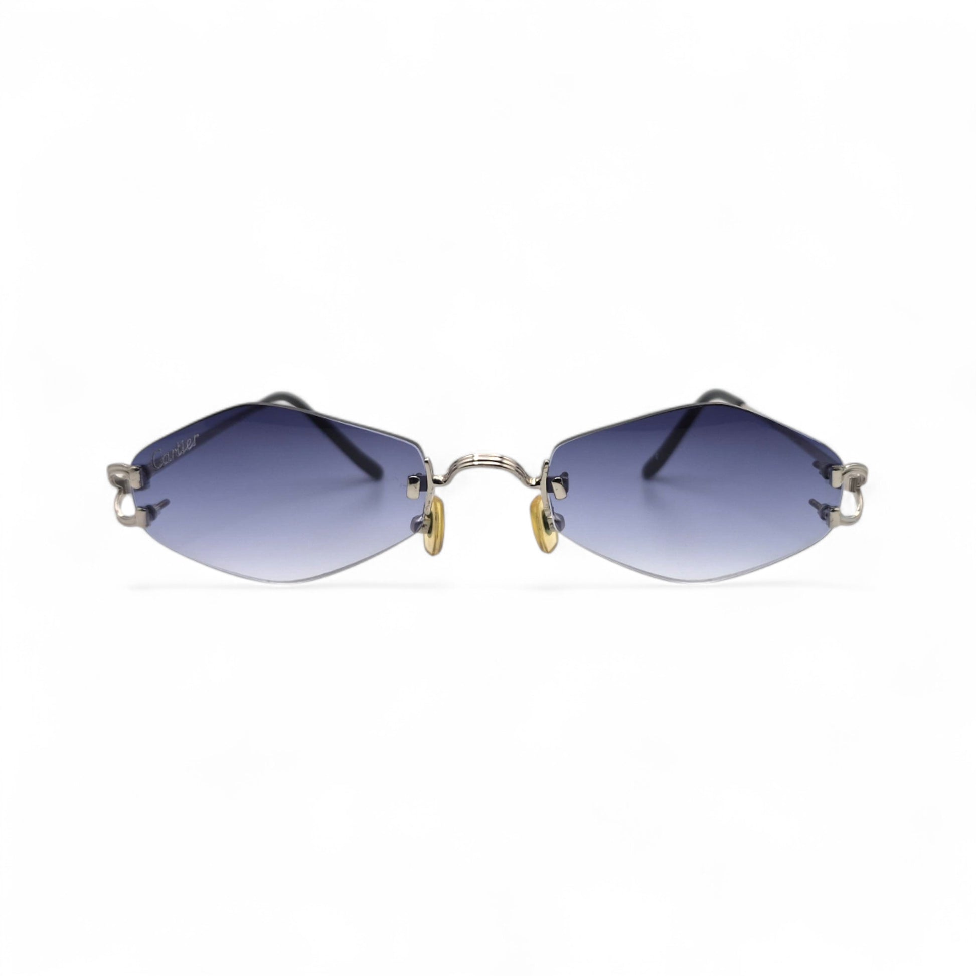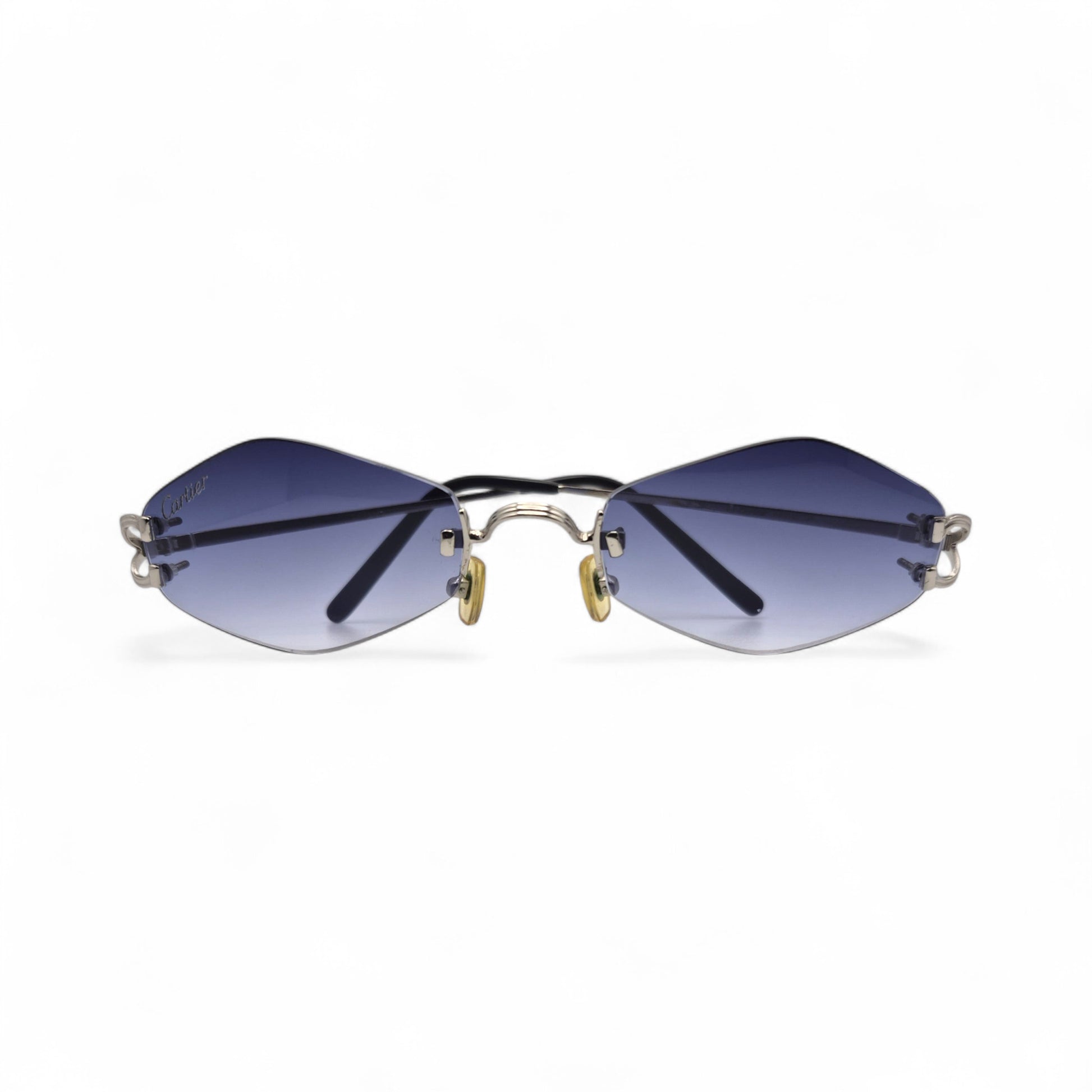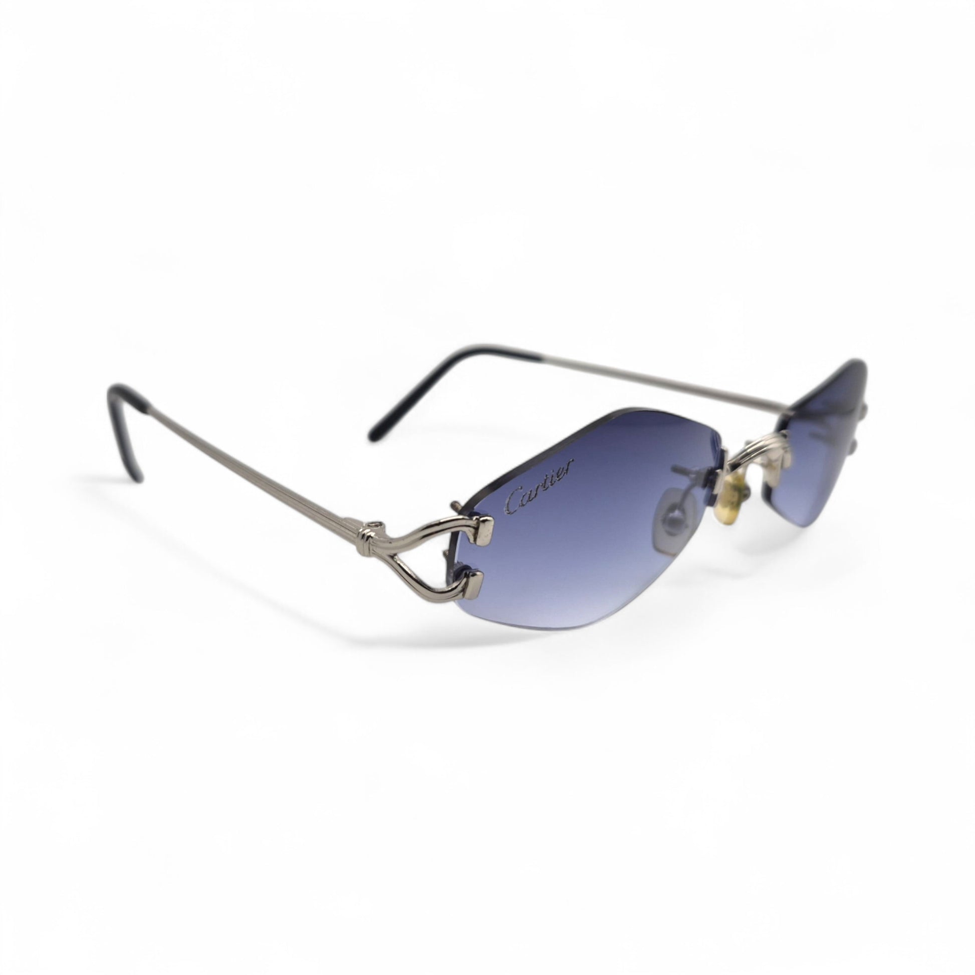 Authentic Cartier C Decor Soho - Platinum Wires Sunglasses w/ Smoke Gray/Blue Lenses (2000s)