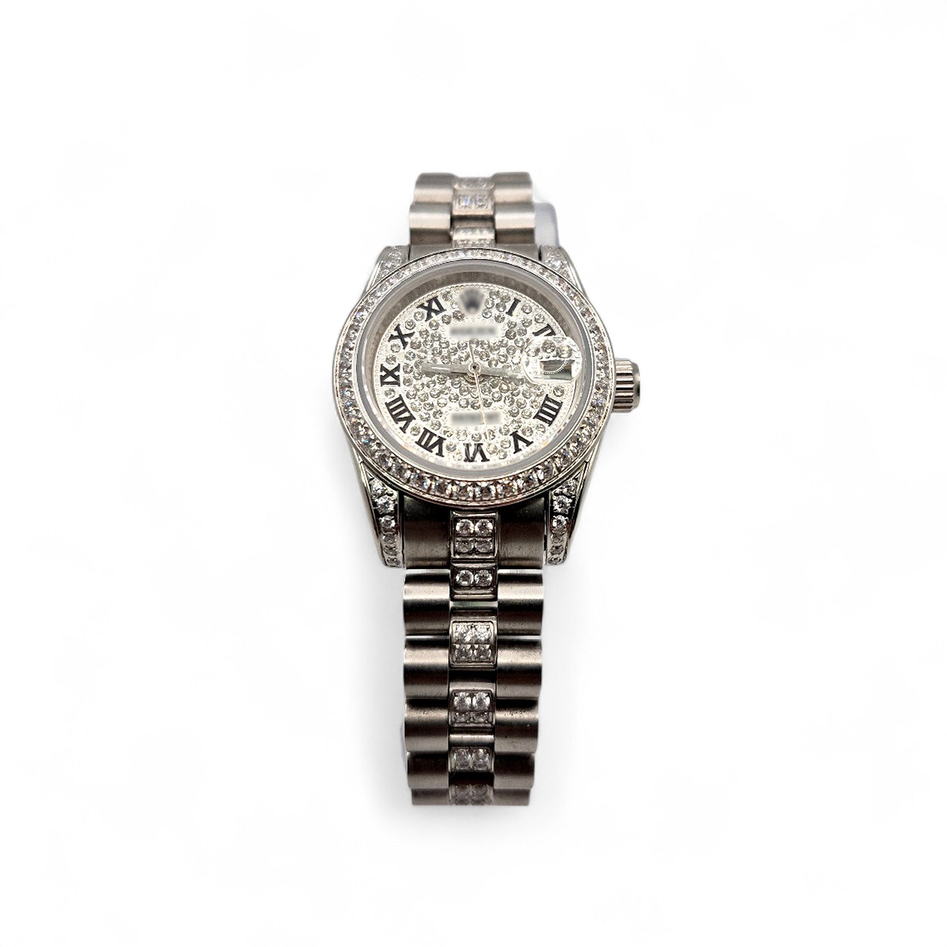RLX DTJ - Silver Watch (Iced Out) - Roman Markers