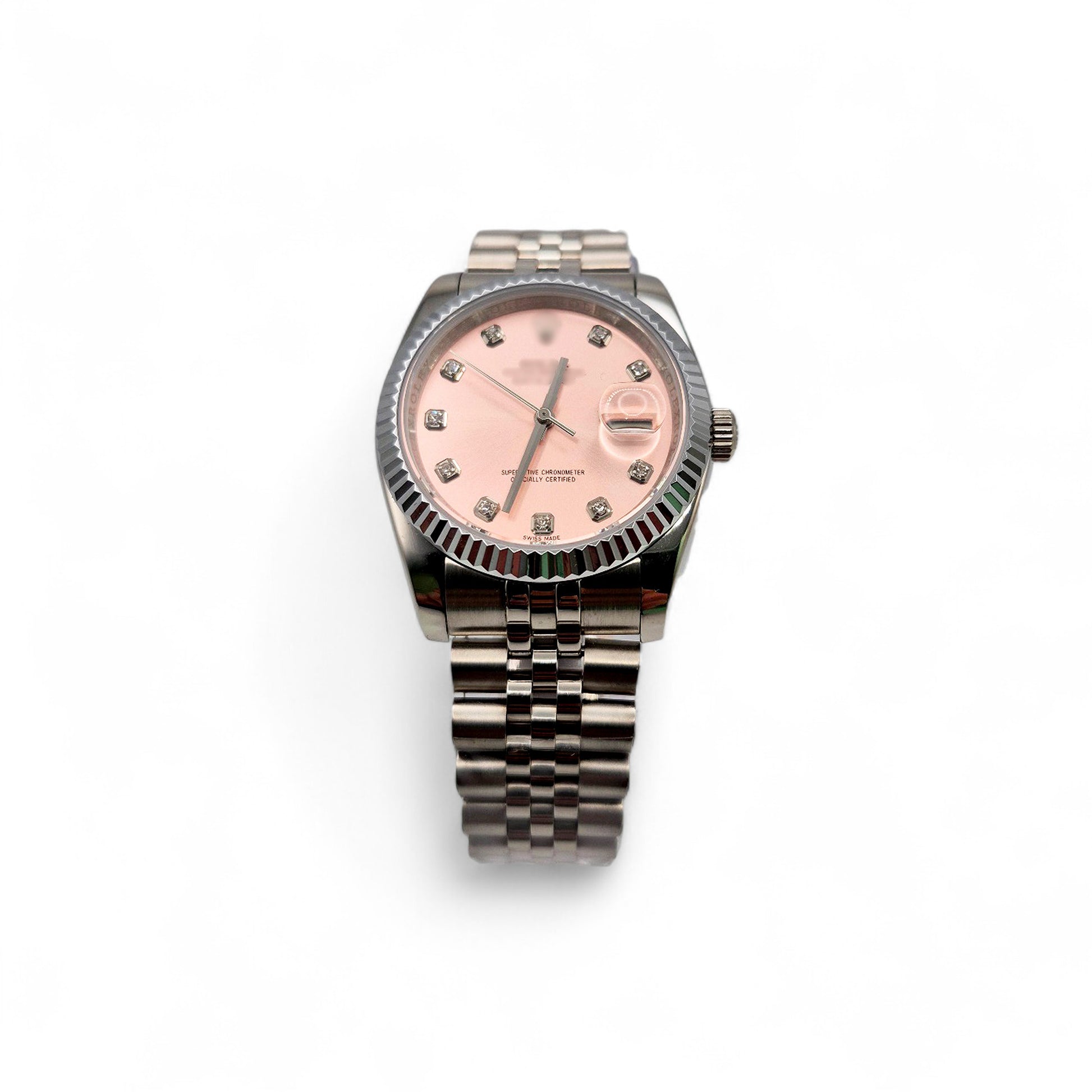 RLX DTJ - Silver Watch - Pink Dial (Diamonds Hour Markers)