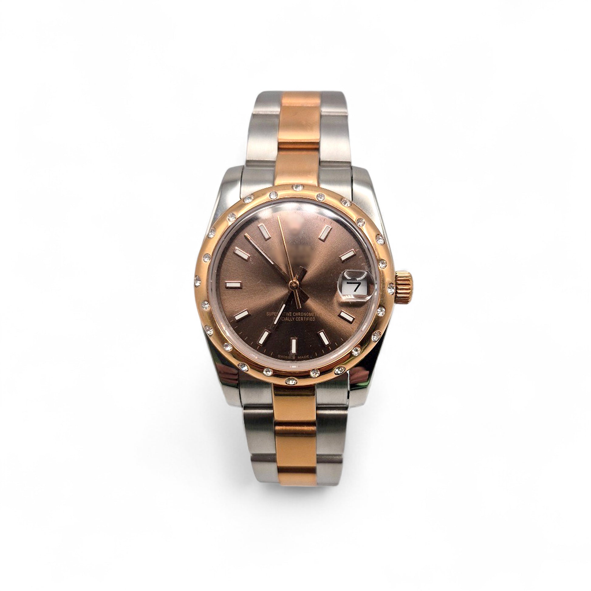RLX DTJ - Two-Tone Watch - Brown Dial (Scattered Diamonds Bezel)