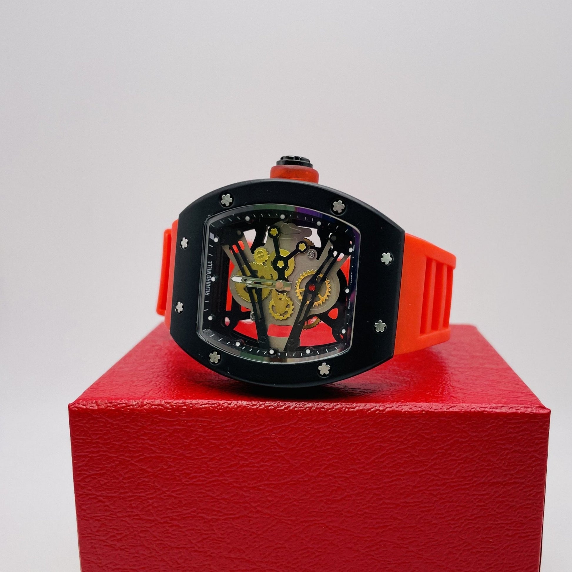 RM - Black Case w/ Skeleton Dial - Red Strap